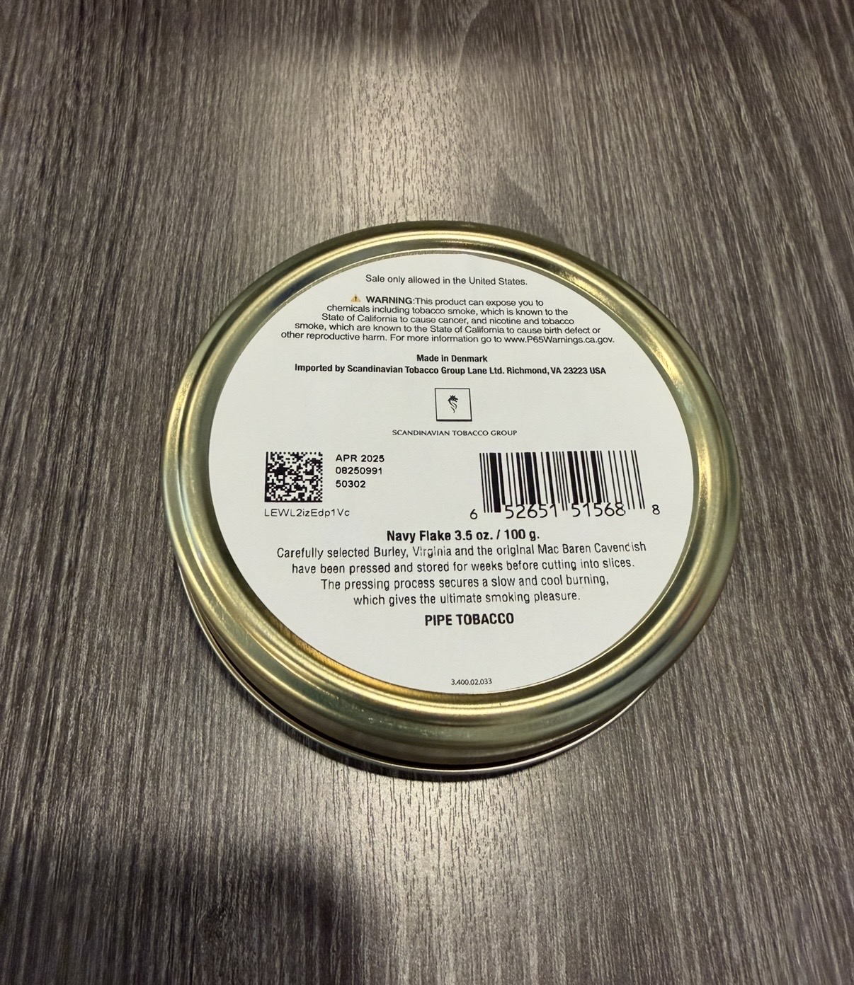100G unopened tin stored in controlled environment.