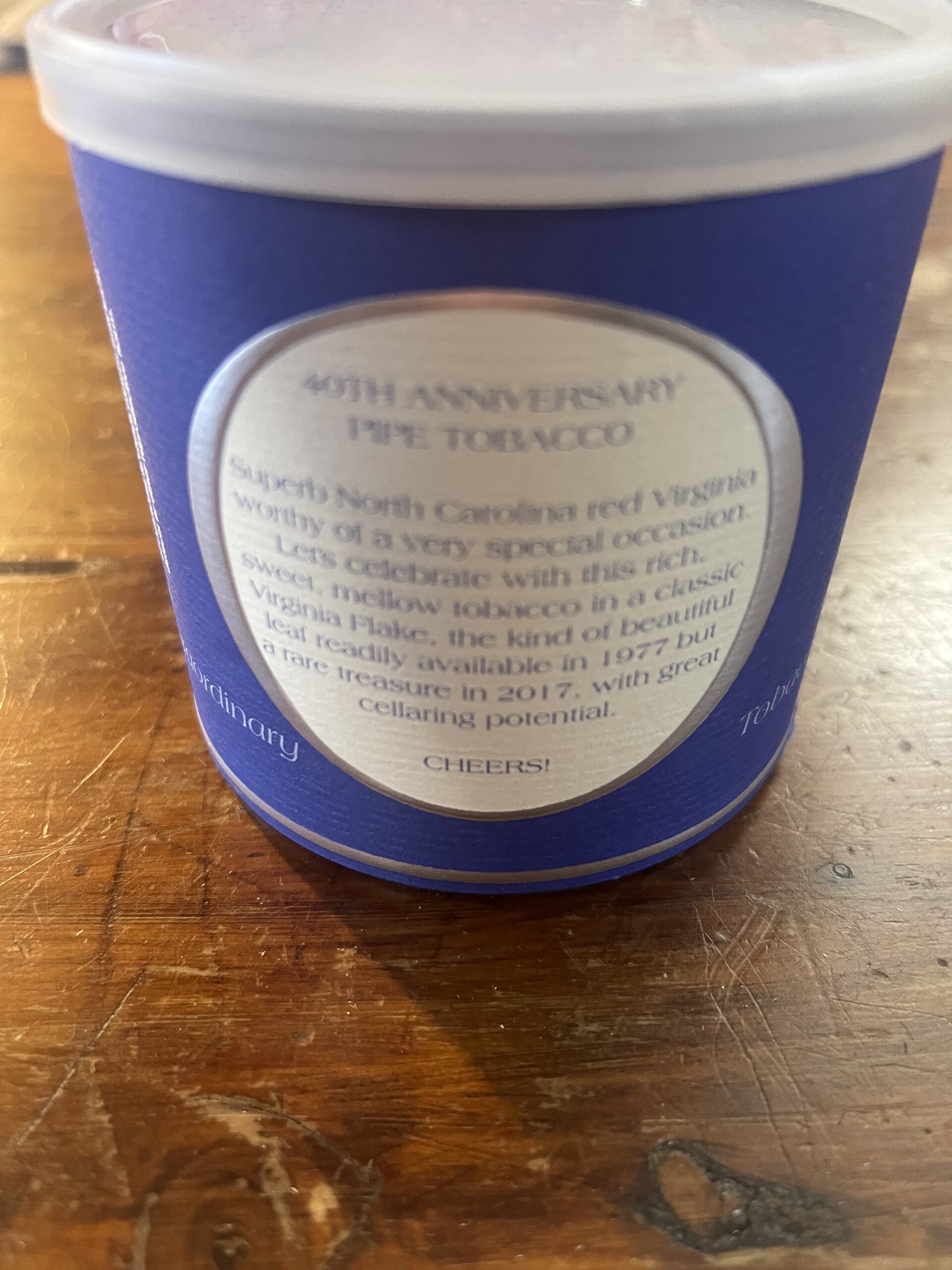 Unopened and carefully stored McClelland 40th Anniversary 100g from 2017. Fantastic blend that smokes great now and will likely age unbelievably well.