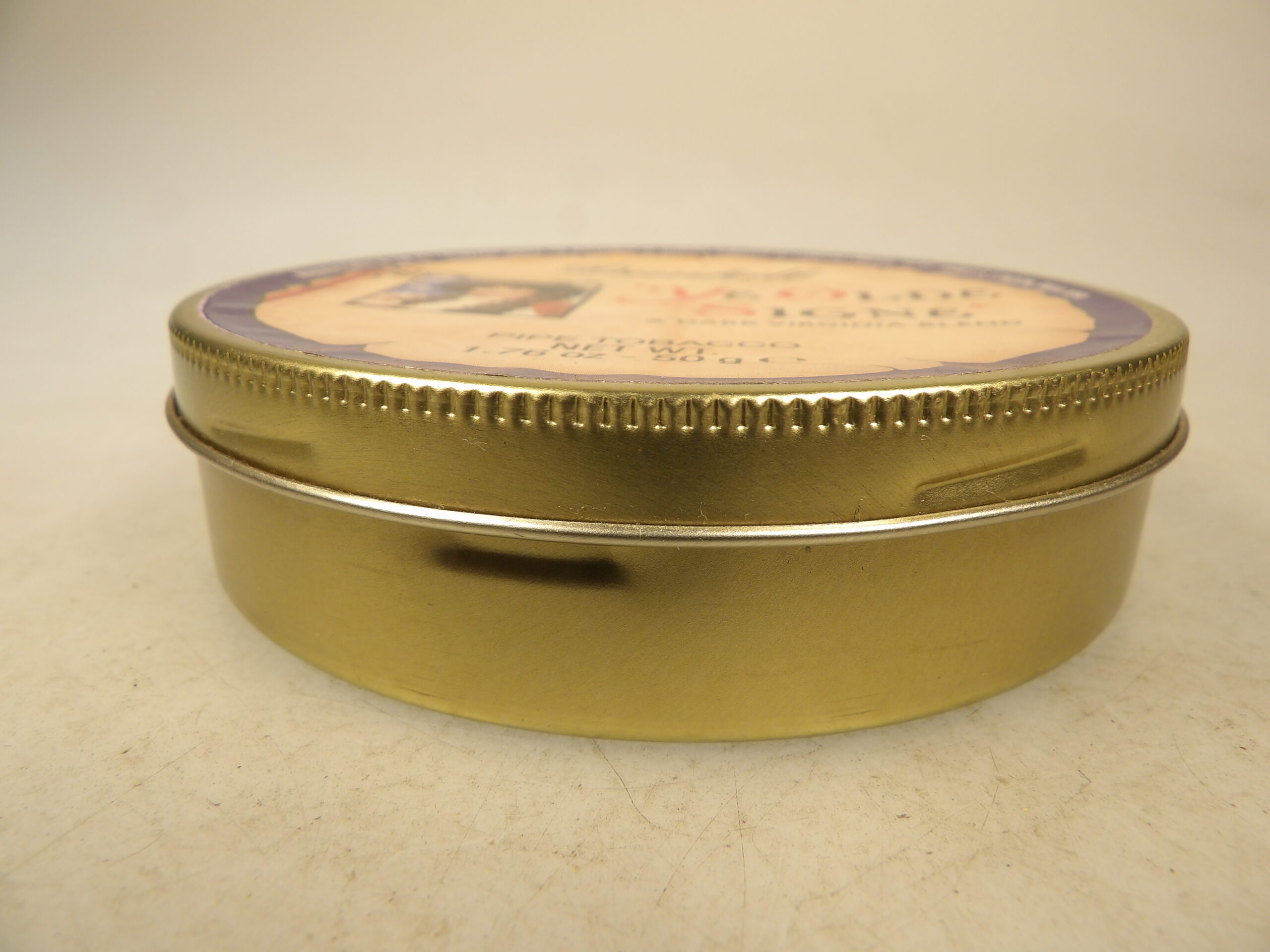 DESCRIPTION: Here is an auction sale. It is an old highly Collectible Dunhill Ye Olde Signe 50g Pipe Sealed Tobacco Tin a Dark Virginia Blend. Rich in natural sweetness, soft delicate flavor, medium strength. A Fan quote: ‘I popped the tin to discover the leaf was as shag cut as any I've ever seen. Is there such a thing as Angel Hair cut? Well, that's the way I'll describe this leaf because it is truly "heavenly! The tin bouquet was almost identical to taking a whiff of a Lipton's tea bag. The dark and finely shredded leaf does not pack easily as the strands are long. I could have chopped it up in my one speed food processor which I use to make long cut blends manageable, but did not want to chance this stuff burning too fast since it was quite dry out of the tin. Once lit, my palate received wave after wave of good, stout, straight Virginia flavor. I also got plastered by the Nicotine level. There is no real sweetness in Ye Olde Signe, just a good old fashioned smoke.” Good Luck Bidding and Thanks for stopping by.