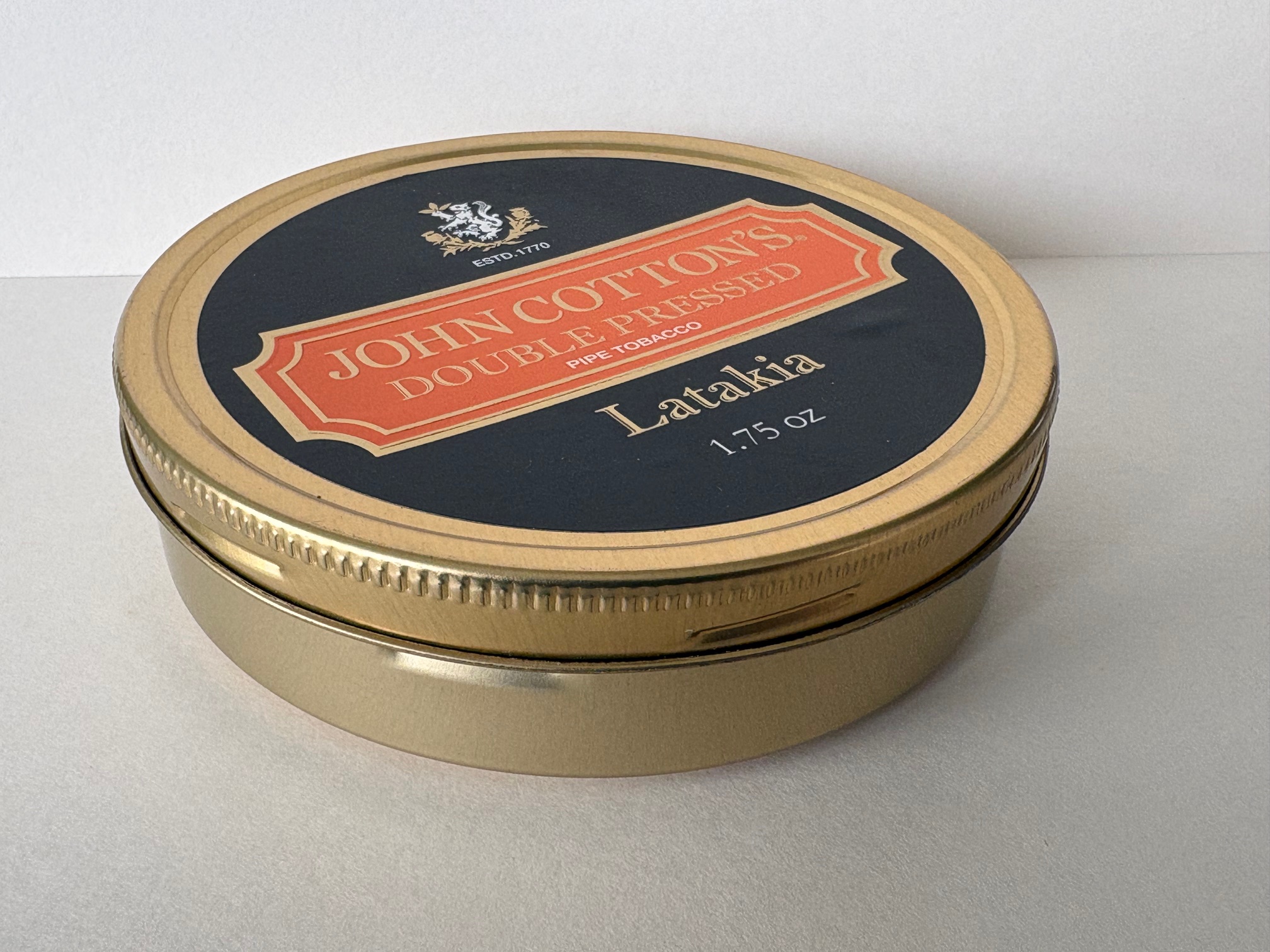 Unopened 1.75 ounce tin of John Cotton's Double Pressed Latakia.