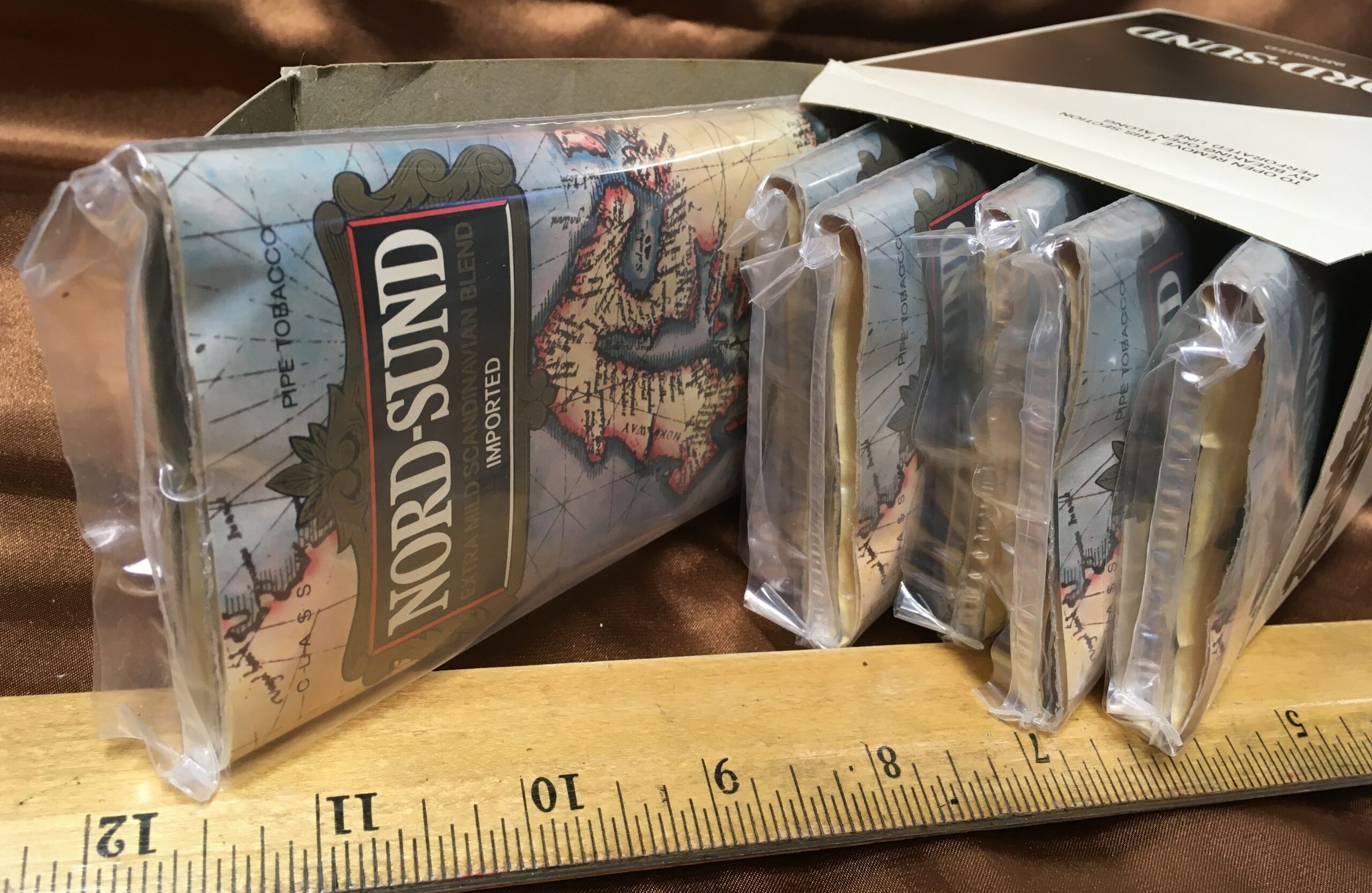 Vintage (1970s?) NORD-SUND EXTRA MILD SCANDINAVIAN BLEND Pipe Tobacco - Display Box of Six (6) 1-1/2 oz Unopened Pouches
