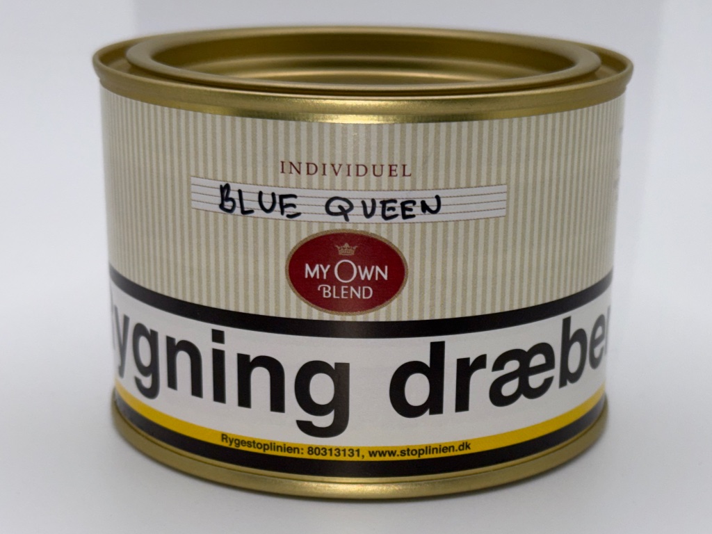 One unopened 100g tin of Paul Olsen My Own Blend Blue Queen from my private collection. Was purchased new by me in 2017 from the Danish Pipe Shop and cellared in the dark at a near constant 68 degrees ever since.