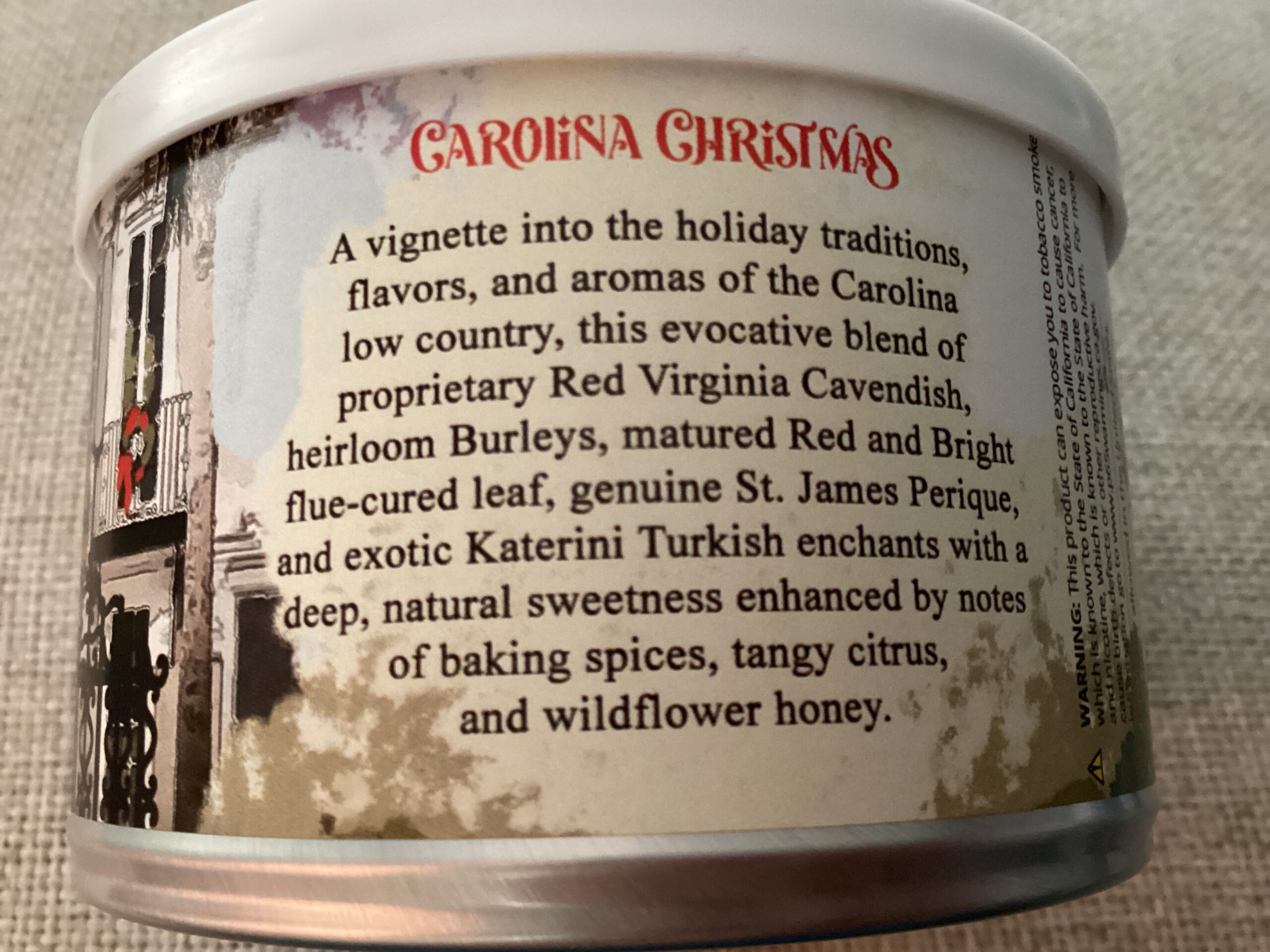 This was a, small-batch, seasonal release created specifically for Low Country Pipe & Cigar and is difficult to find. Named and blended for Smokingpipes' brick-and-mortar store in Little River, South Carolina, Low Country pipe tobaccos are all crafted by Cornell & Diehl — also located in South Carolina. As a limited-edition blend, Carolina Christmas deviates from the riverway motif, but still maintains its Lowcountry theme, its tin art depicting Charleston during the holidays. The Carolina Christmas 2024 pipe tobacco celebrates the Lowcountry during the holiday season and comprises a blend of proprietary Red Virginia Cavendish, heirloom Burleys, matured Red and Bright flue-cured leaf, genuine St. James Perique, and exotic Katerini Turkish. This tin is sealed with no dents or damage.