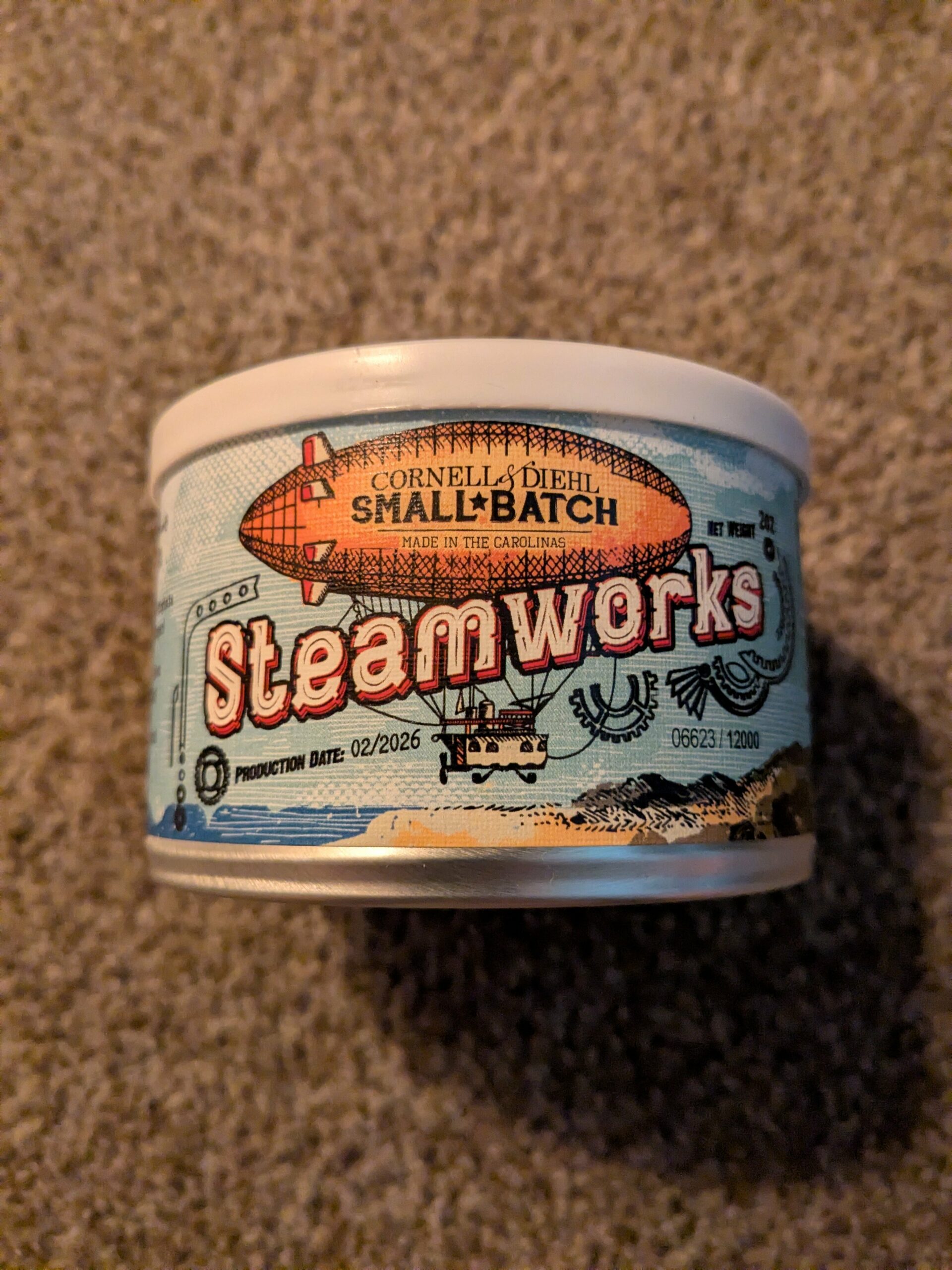This auction is for a sealed 2oz tin of Cornell and Diehl's STEAMWORKS from 2026.