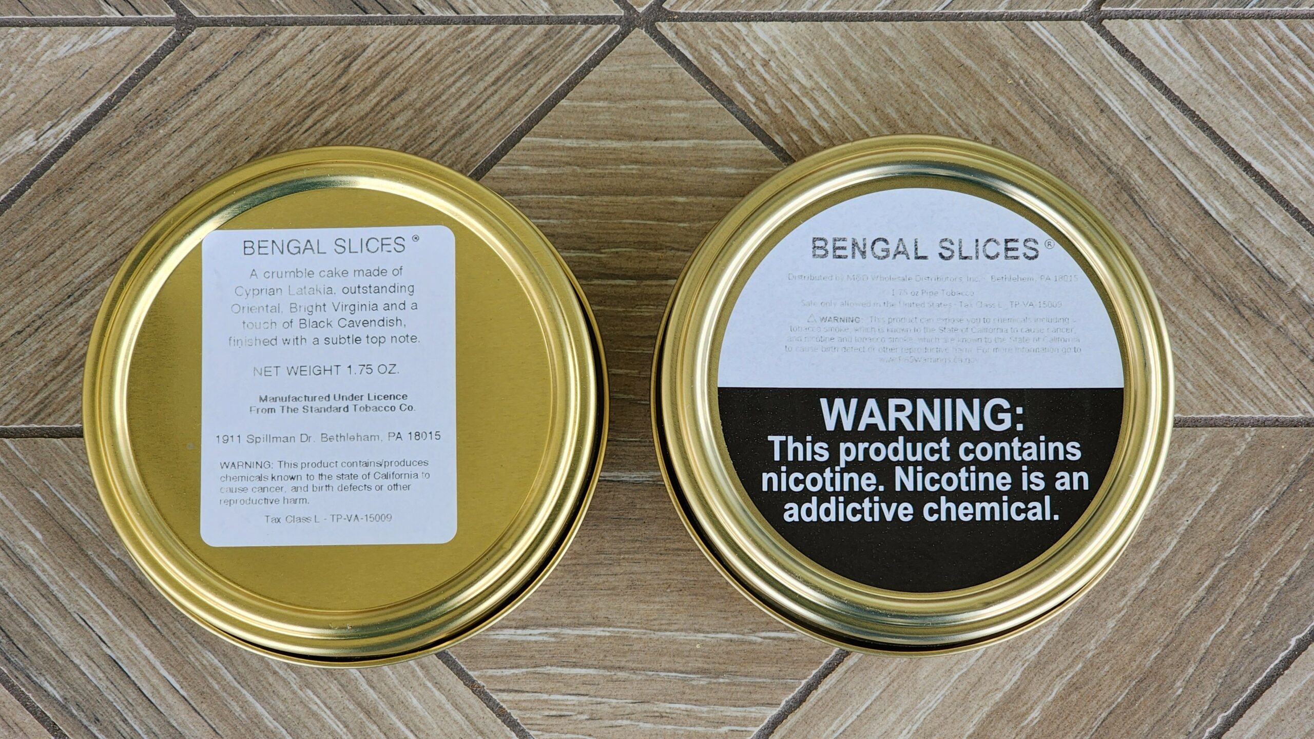 This auction is for two 1.75oz tins of Bengal Slices (one white label and one black label).