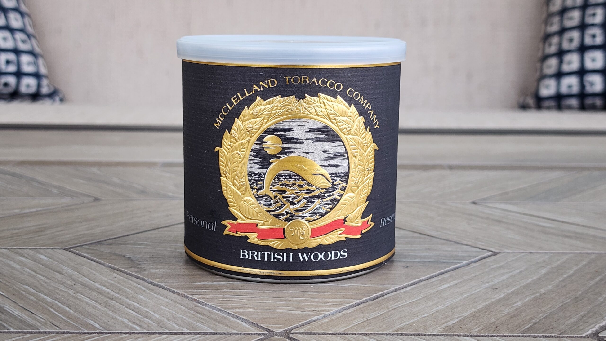 This auction is for one 100g tin of British Woods by McClelland Tobacco Company, dated 2007.