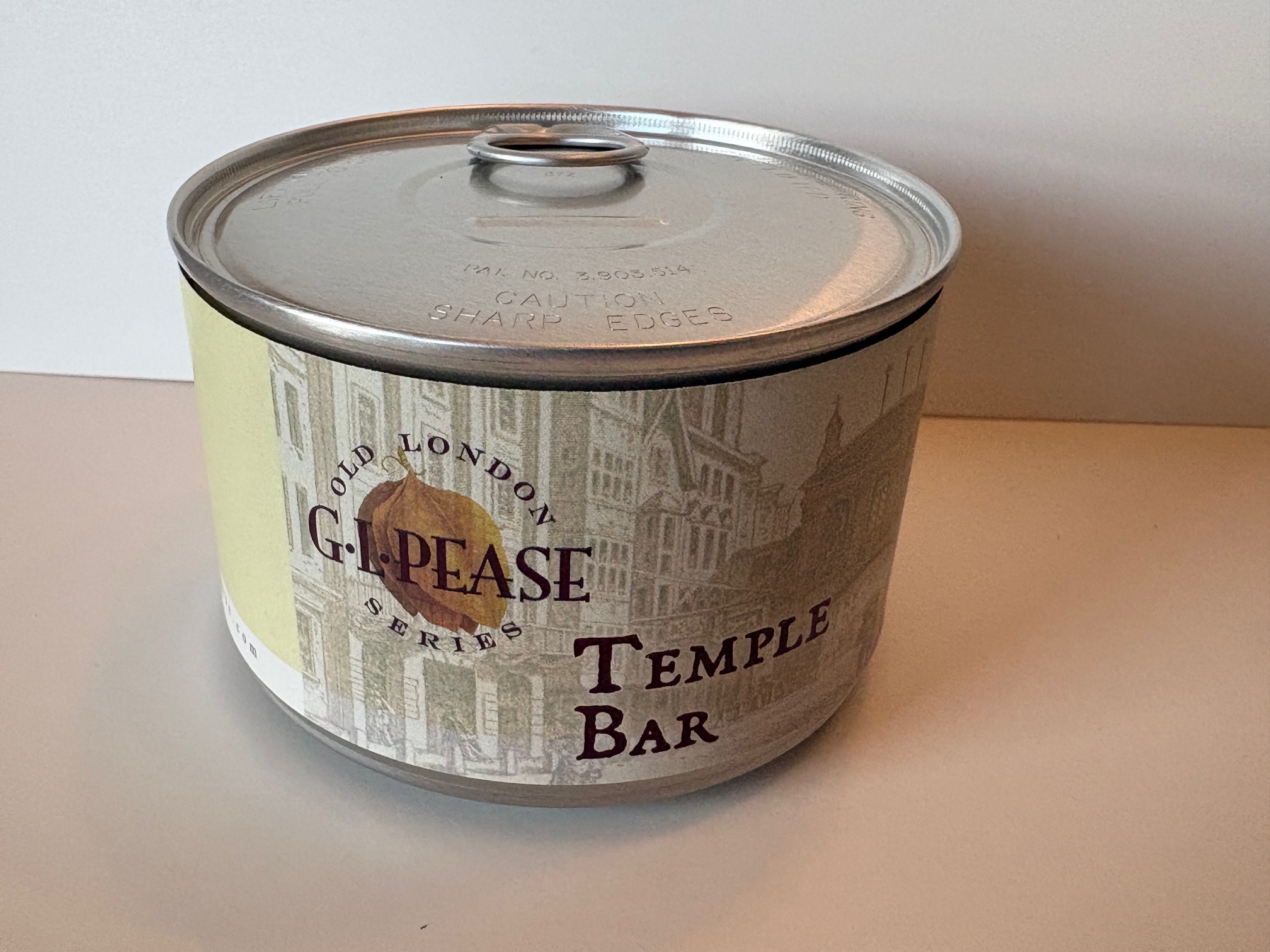 Unopened 2 ounce tin of 2018 G.L. Pease Temple Bar.