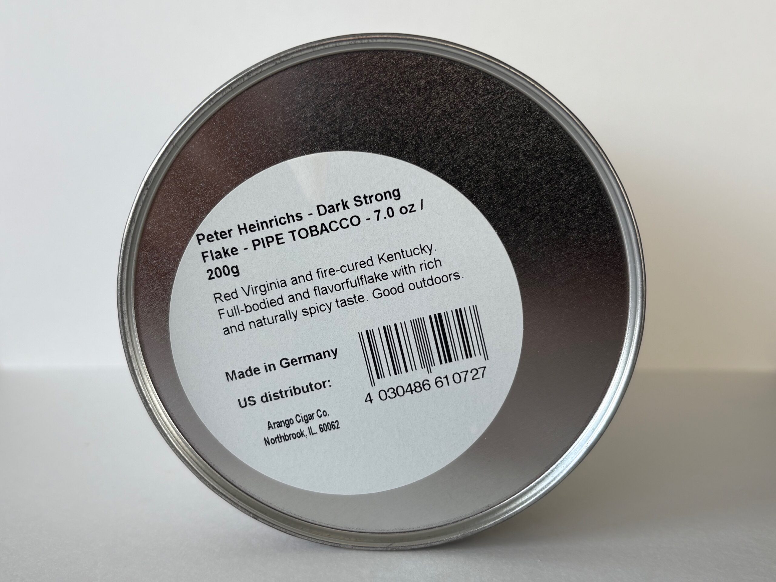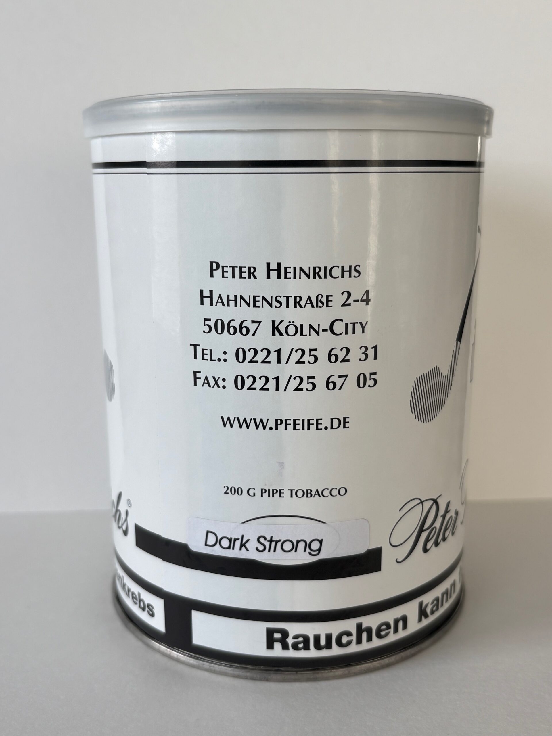 Unopened 200g tin of 2012-2015 Peter Heinrichs Dark Strong.