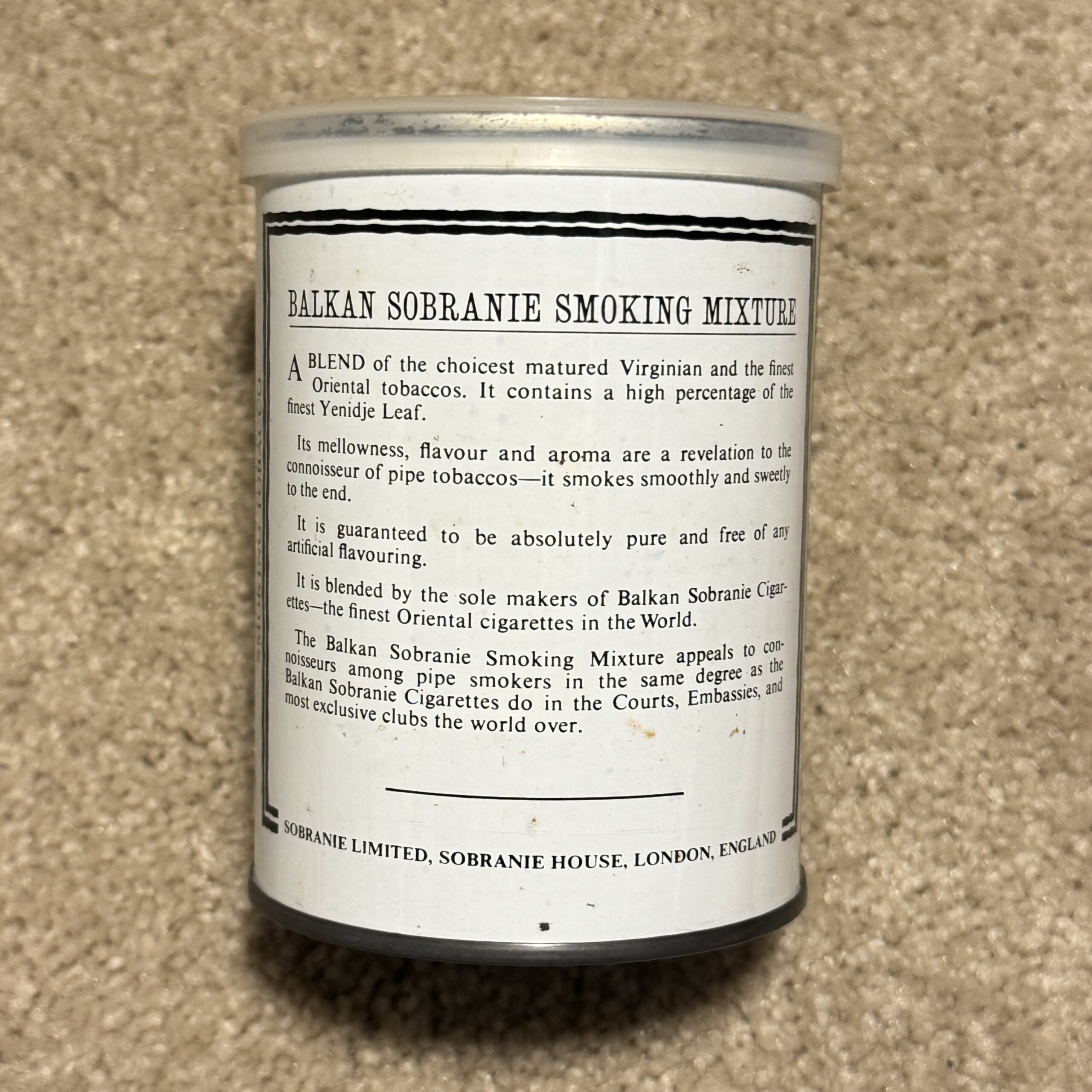 Balkan Sobranie Smoking Mixture 100 gram Can 1970’s Seal Intact