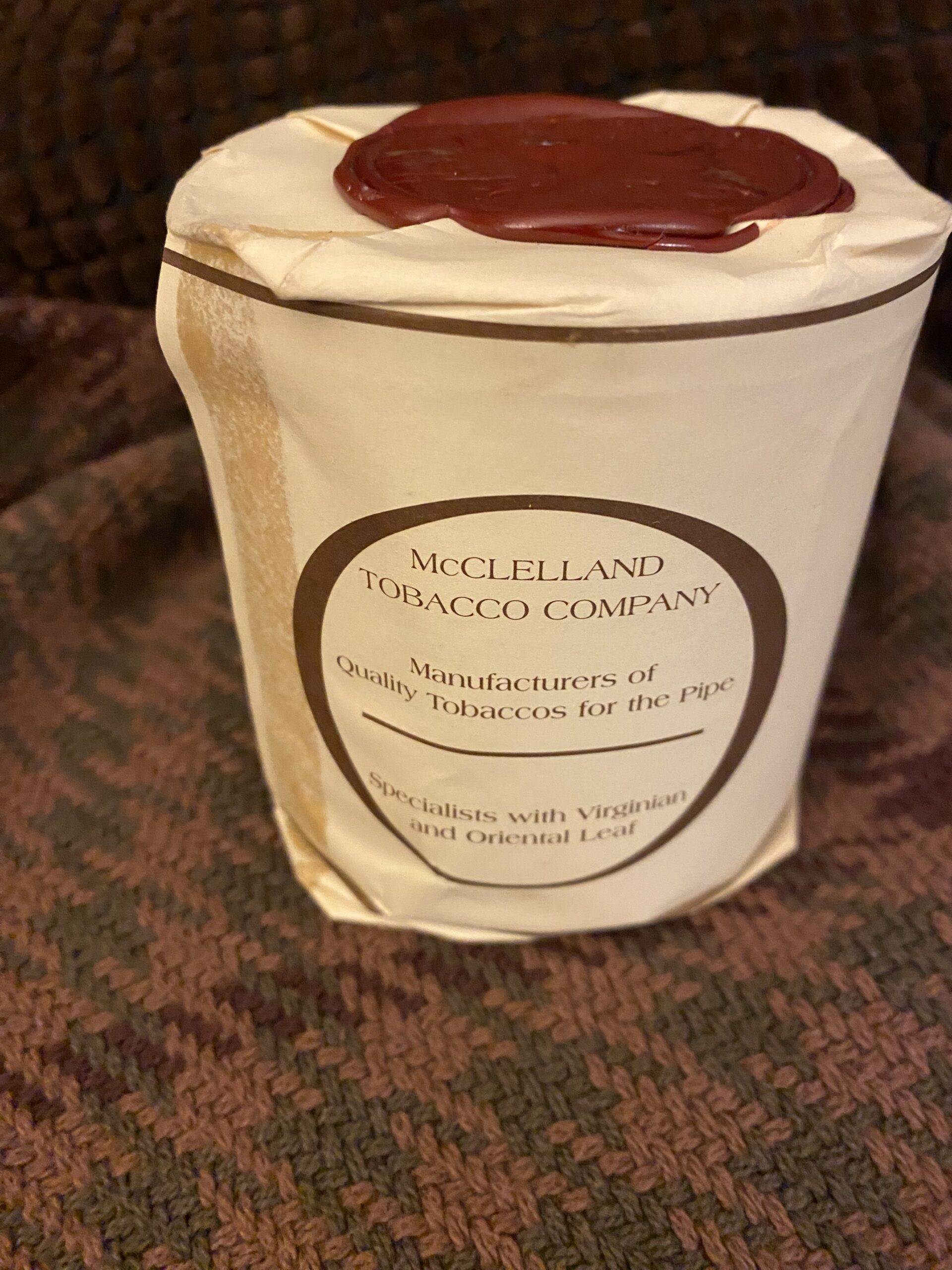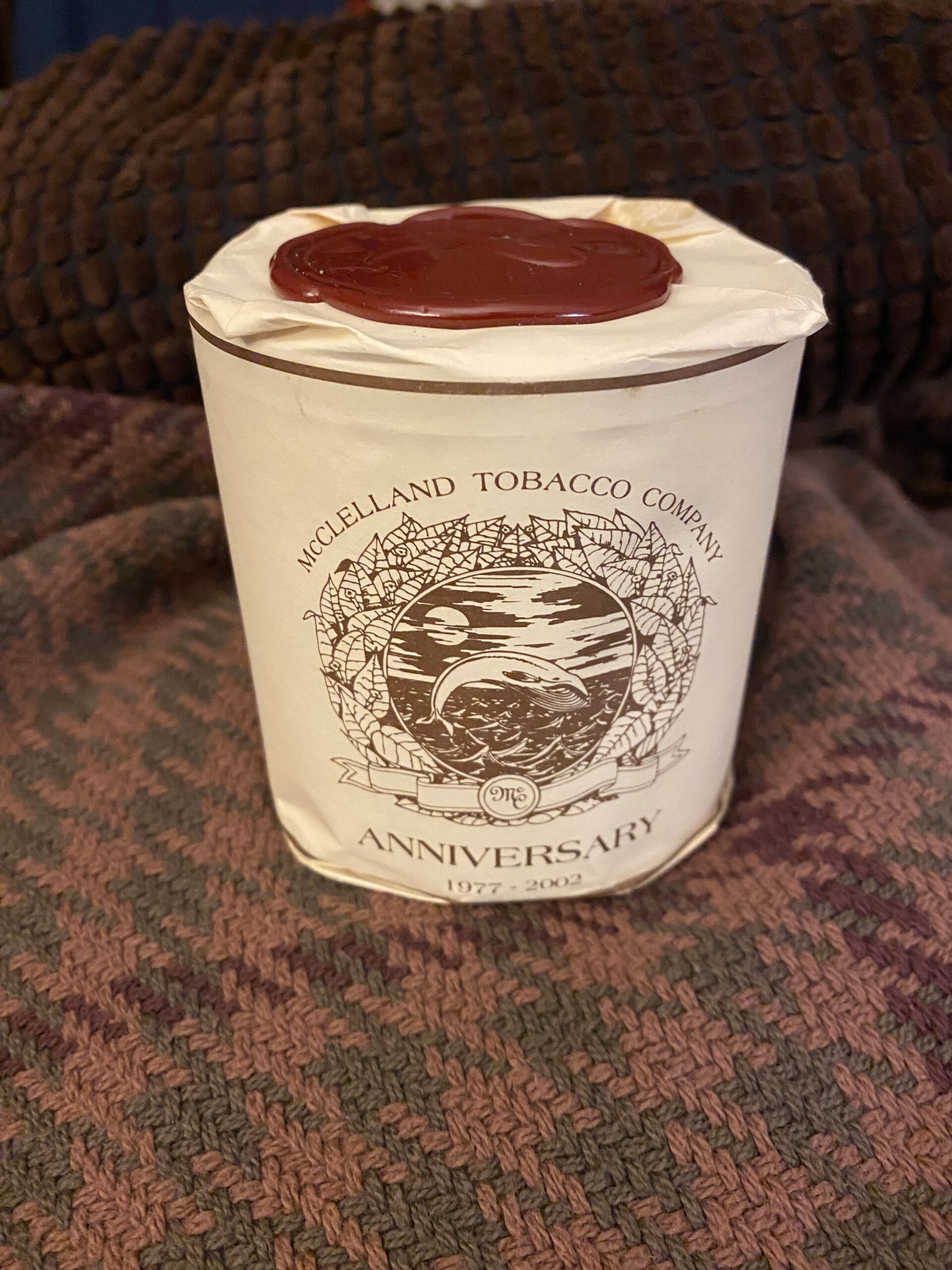 AGED and SEALED tin of McClelland Anniversary Red wax Seal from 2002. 100g tin. Well aged and ready to enjoy. Rare find of sealed out of production tobacco.
