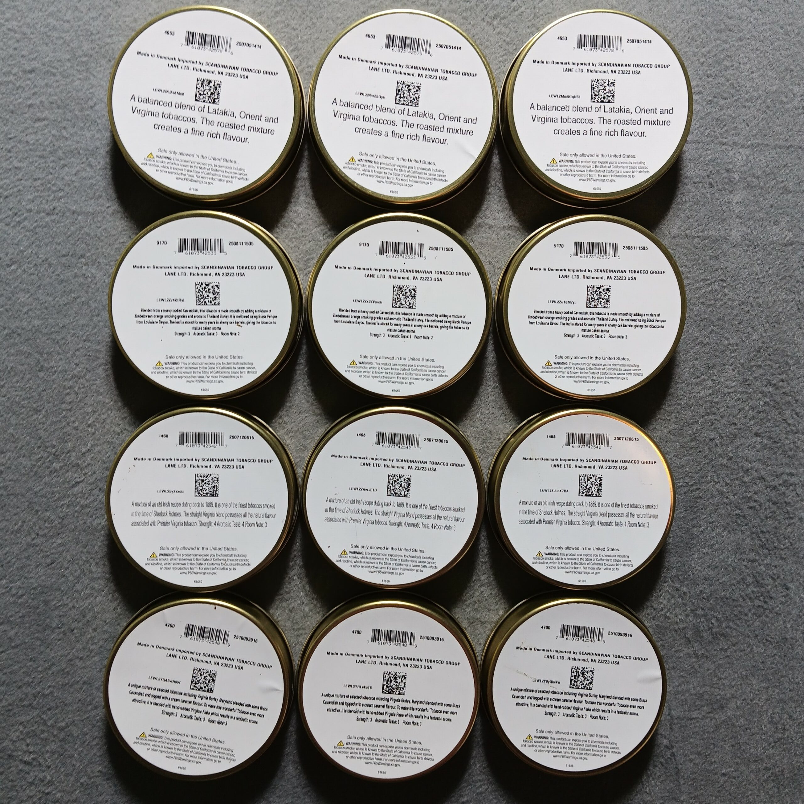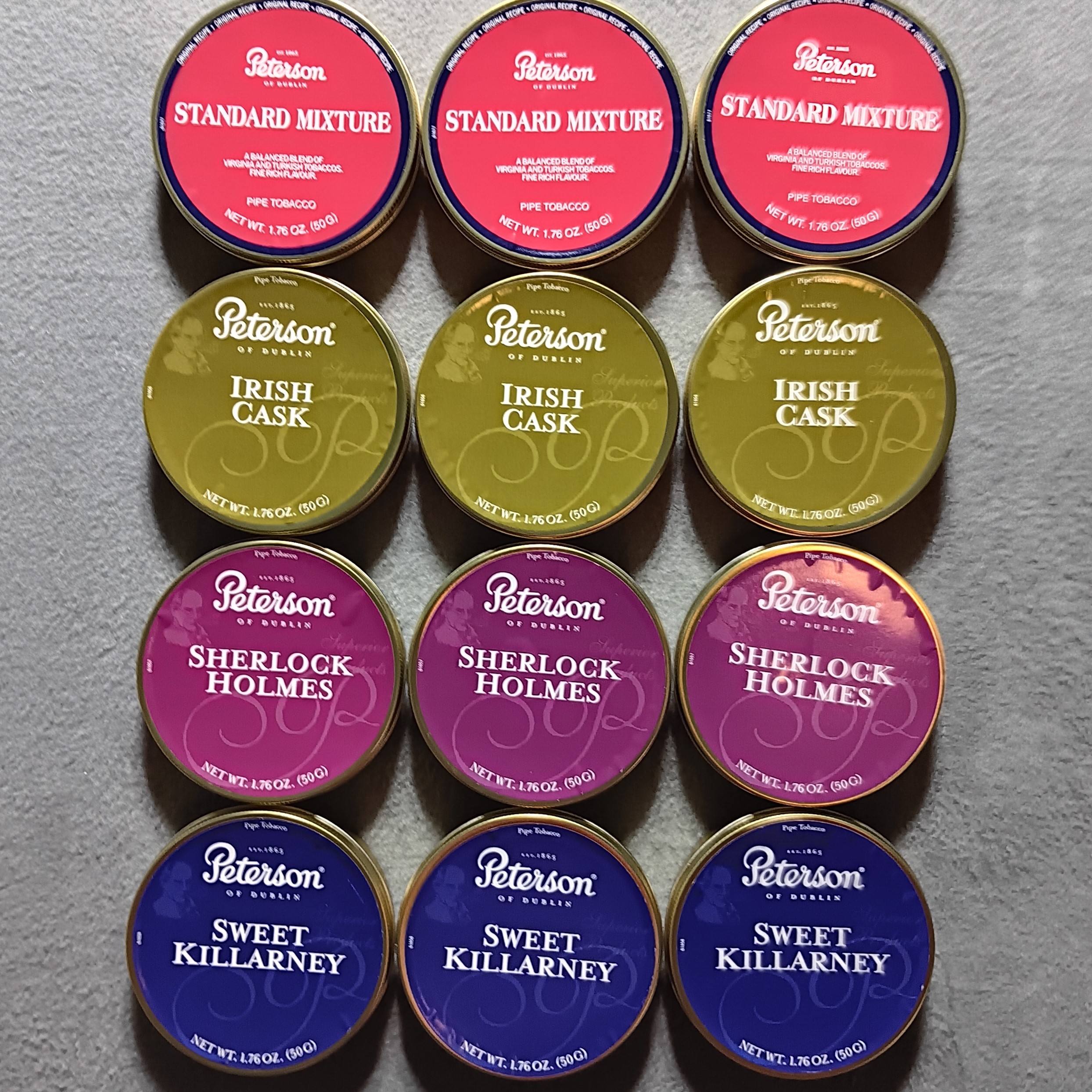 Peterson Sealed 1.75 Ounce Tins [3-Standard Mixture, 3-Irish Cask, 3-Sherlock Holmes, 3-Sweet Killarney]