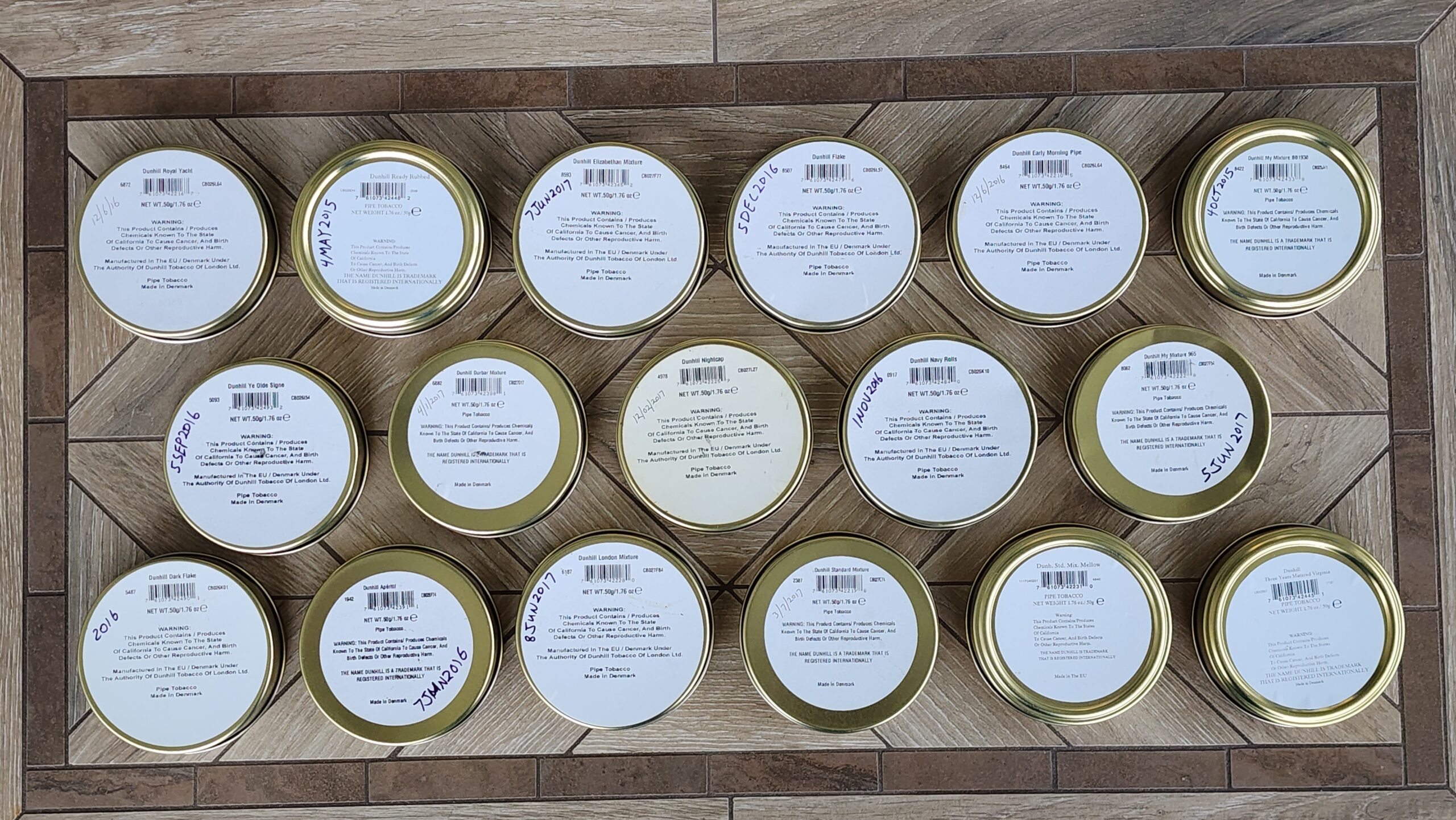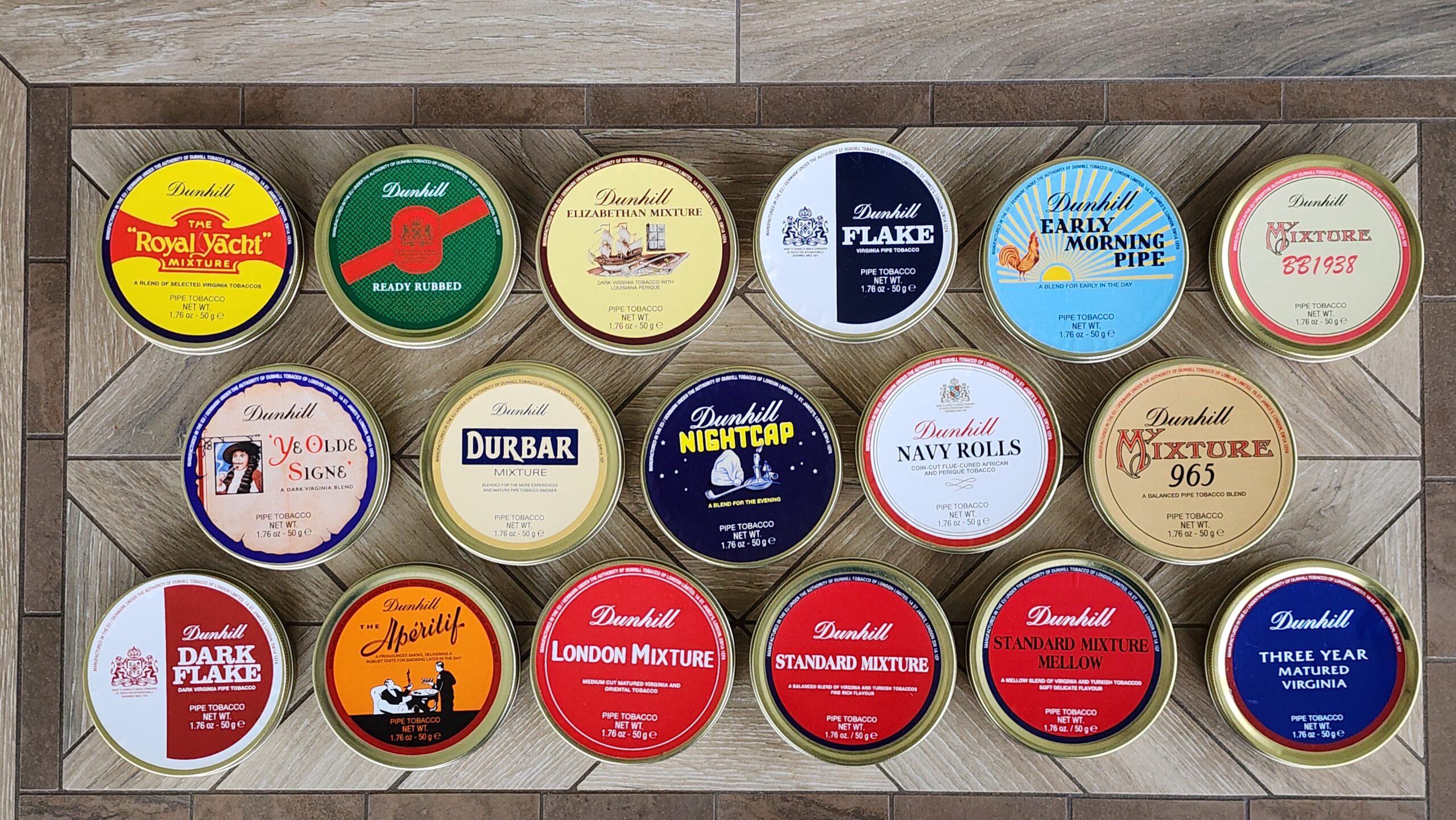 This auction is for 17 tins of Dunhill pipe tobacco. One of each tin listed below is included in the auction.