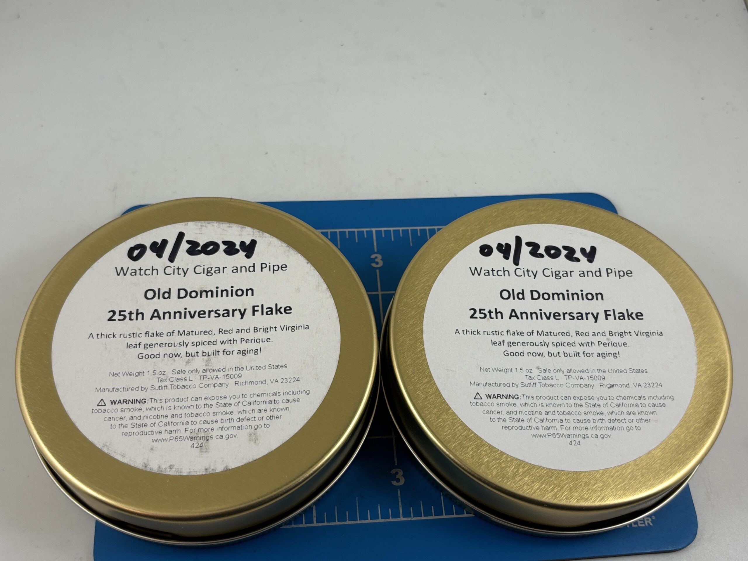 Lot of 2 Excellent Sealed 2024 Watch City Cigars Old Dominion 25th Anniversary Flake 50g. Tins.