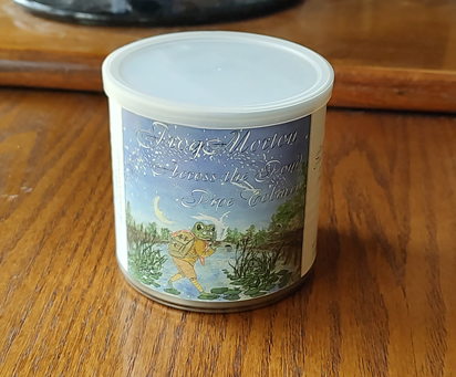 Hard to come by Frog Morton Across the Pond pipe tobacco. I've had this for several years, there is a serial number on the bottom of the tin: 401113, whatever that means. Tin has never been opened and it has been stored in my house.