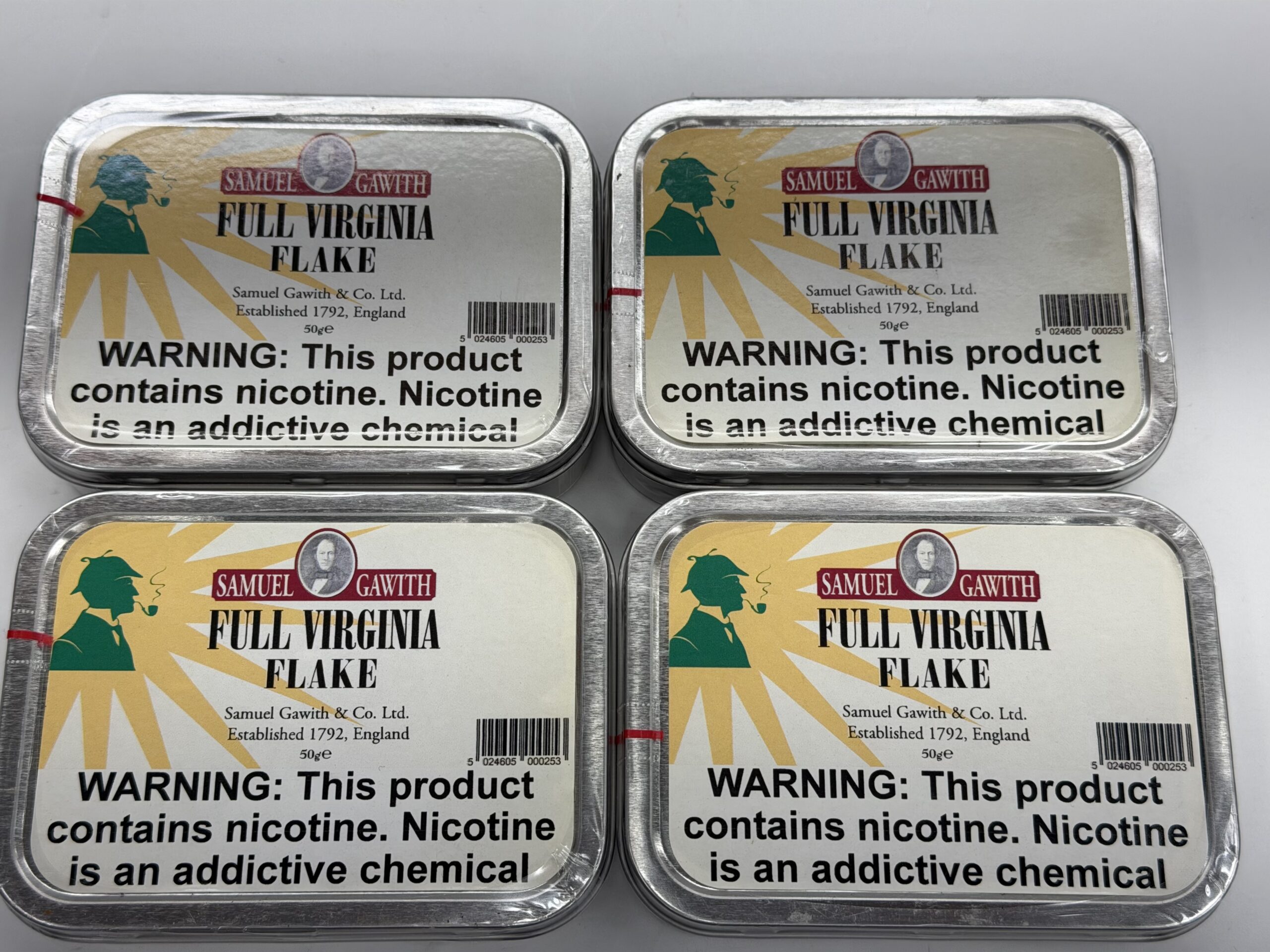 Listing includes: 4 Tins of Samuel Gawith Full Virginia Flake from 2021.
