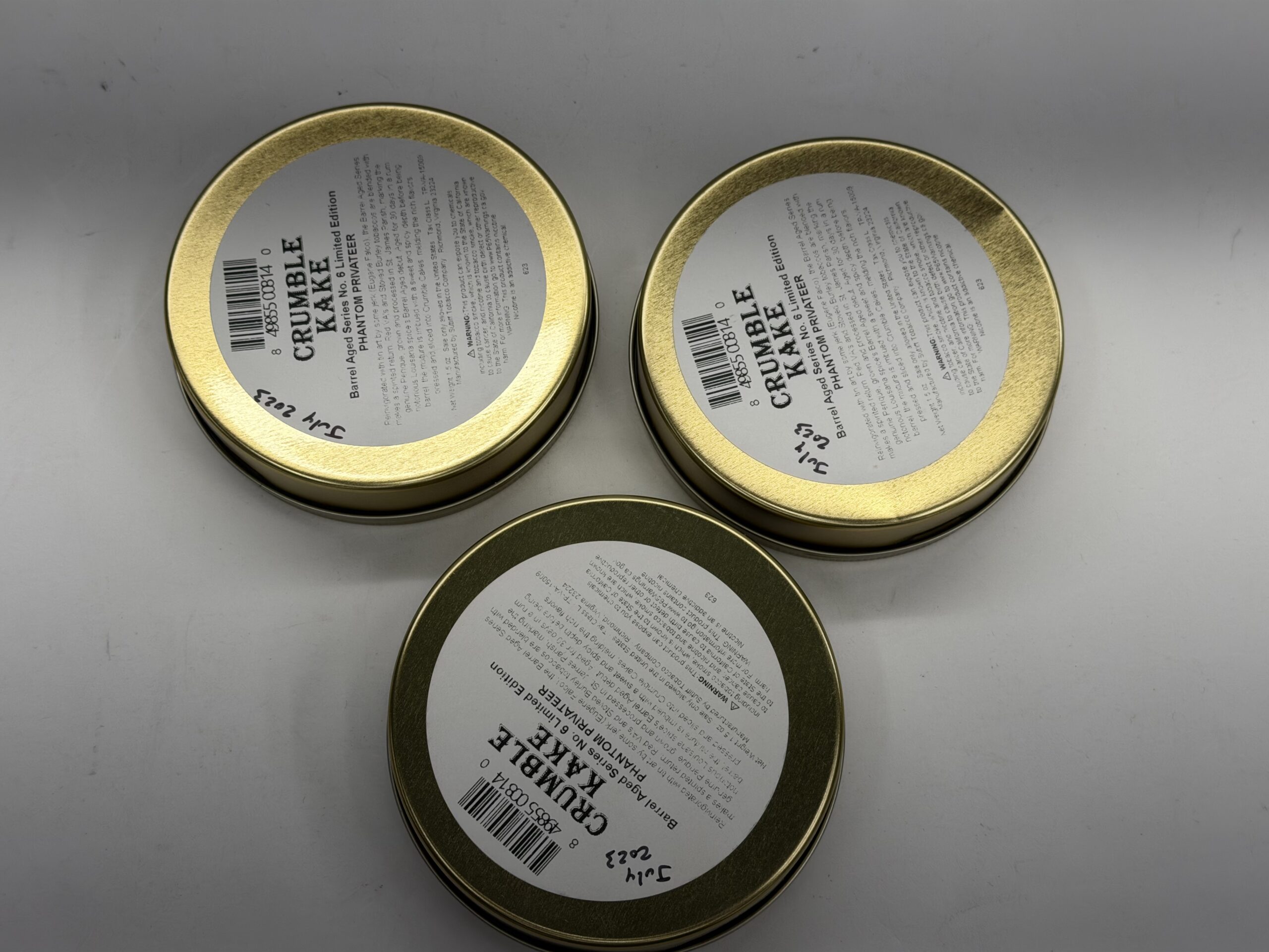 Listing includes: 3 tins of Sutliff Phantom Privateer Crumble Cake No 6 from 2023.