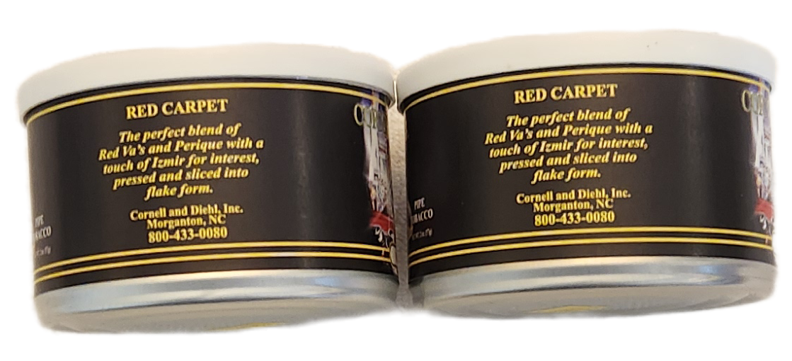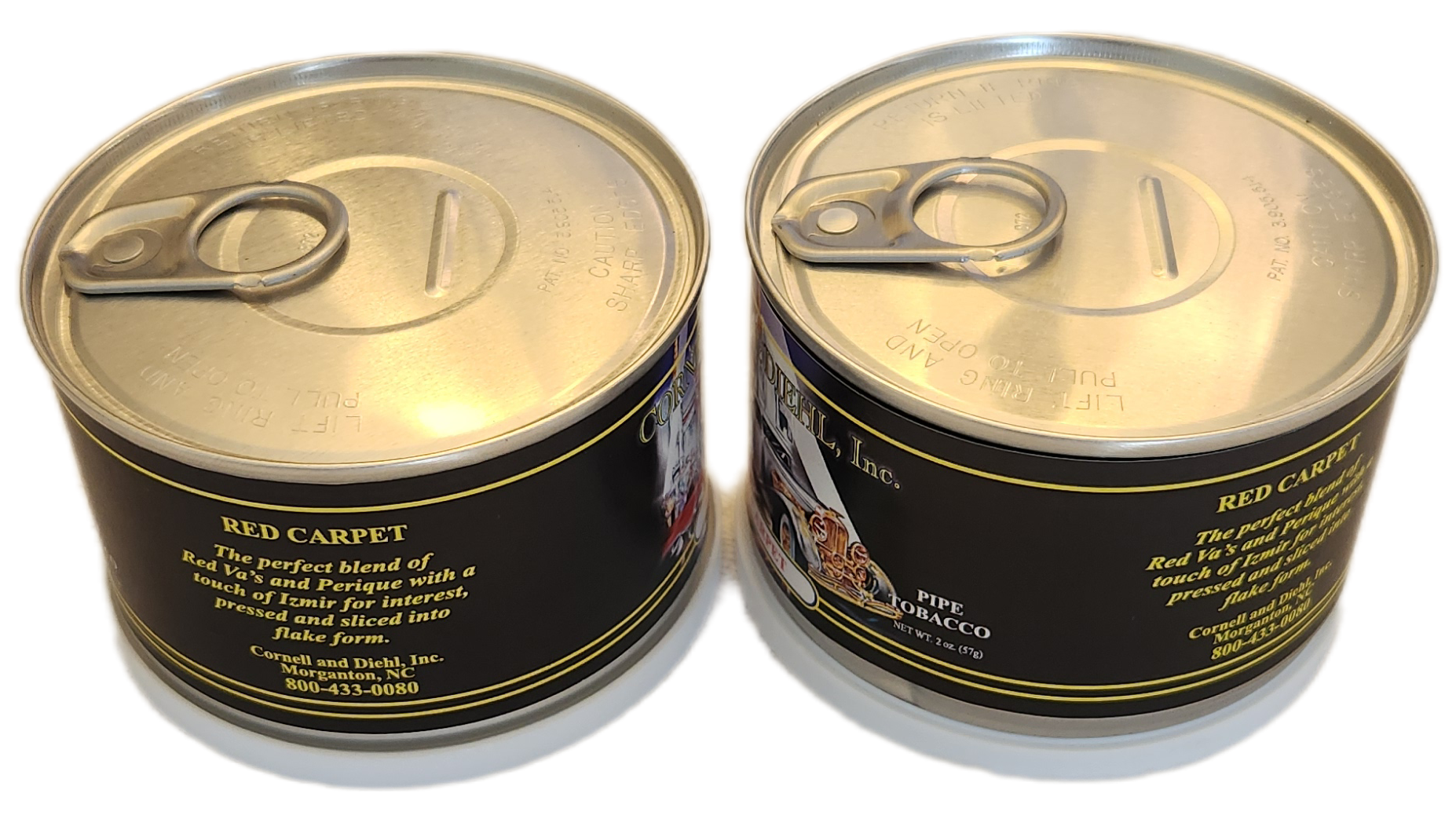 Two sealed and bulging 2 Oz tins of Cornell and Diehl Red Carpet from 2013 , properly cellared