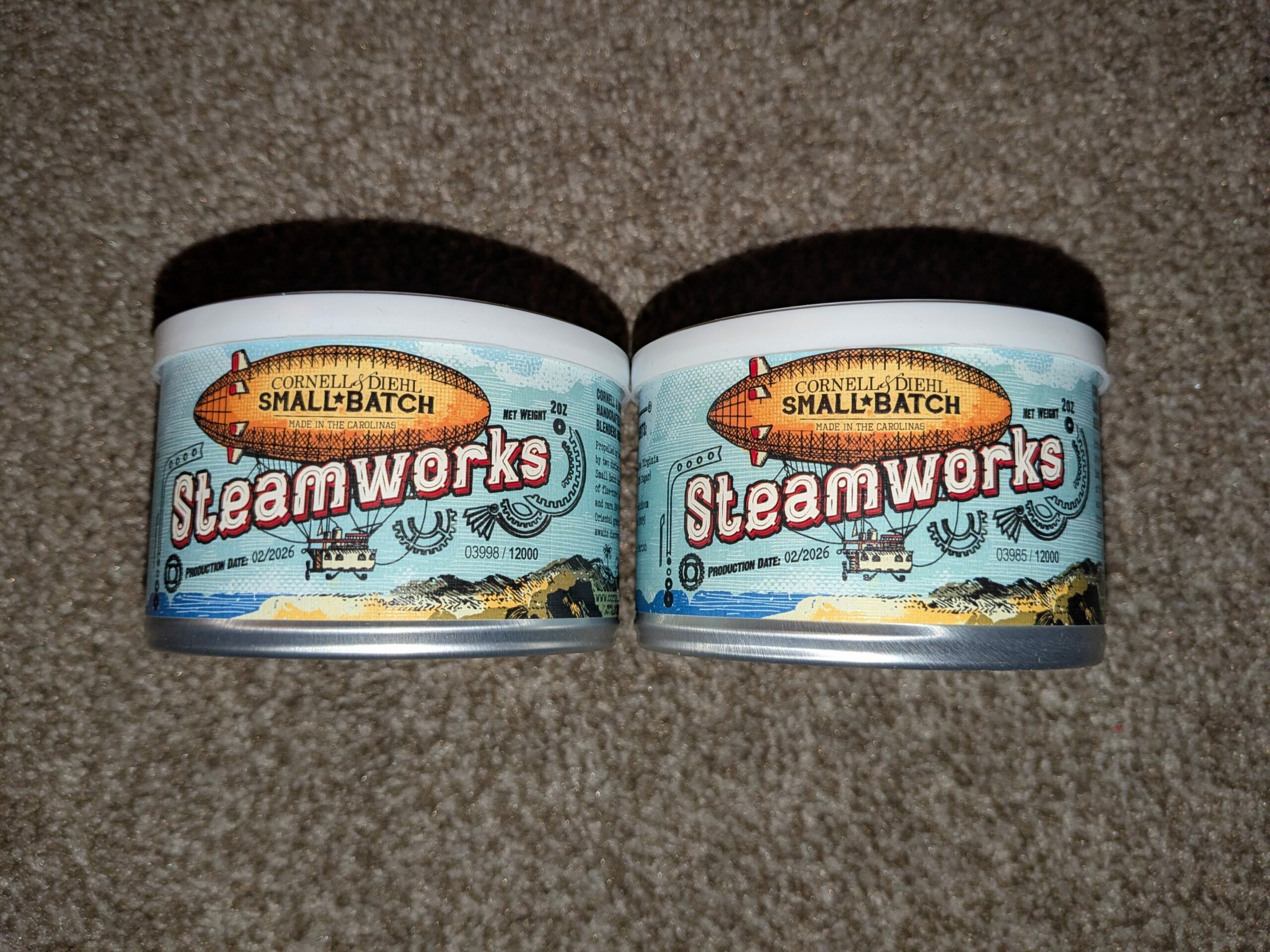 This auction is for TWO sealed 2oz tins of Cornell and Diehl's STEAMWORKS from 2026.