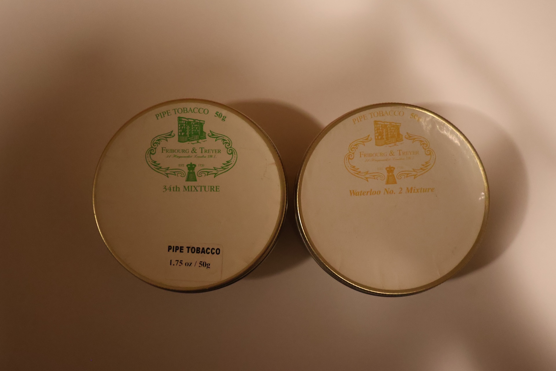 One tin of 34th mixture and one of waterloo no 2