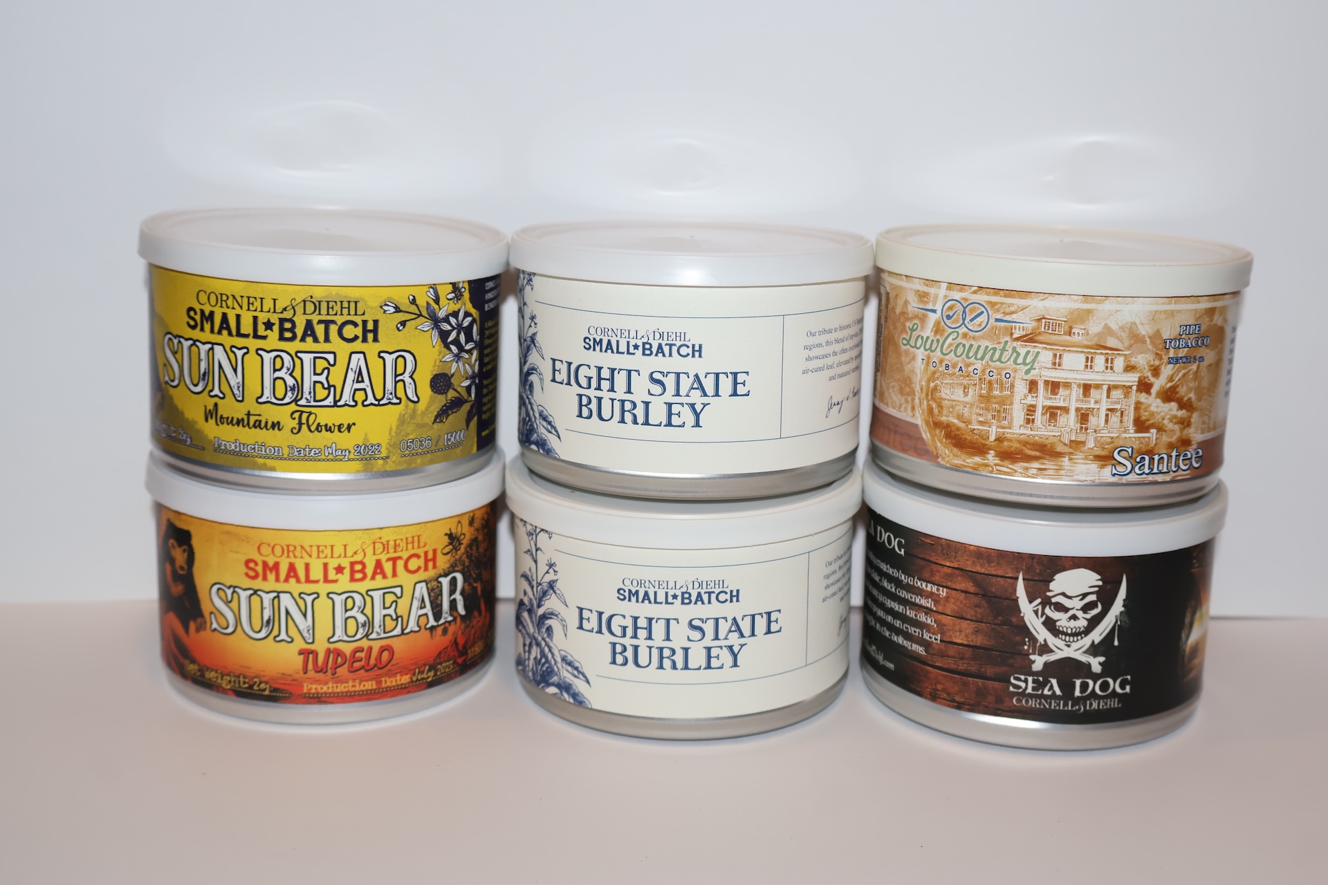 Santee 2009, Sea dog 2019, Sun bear mountain flower 2022, Sun bear tupelo 2023, 2x Eight state burley 2022