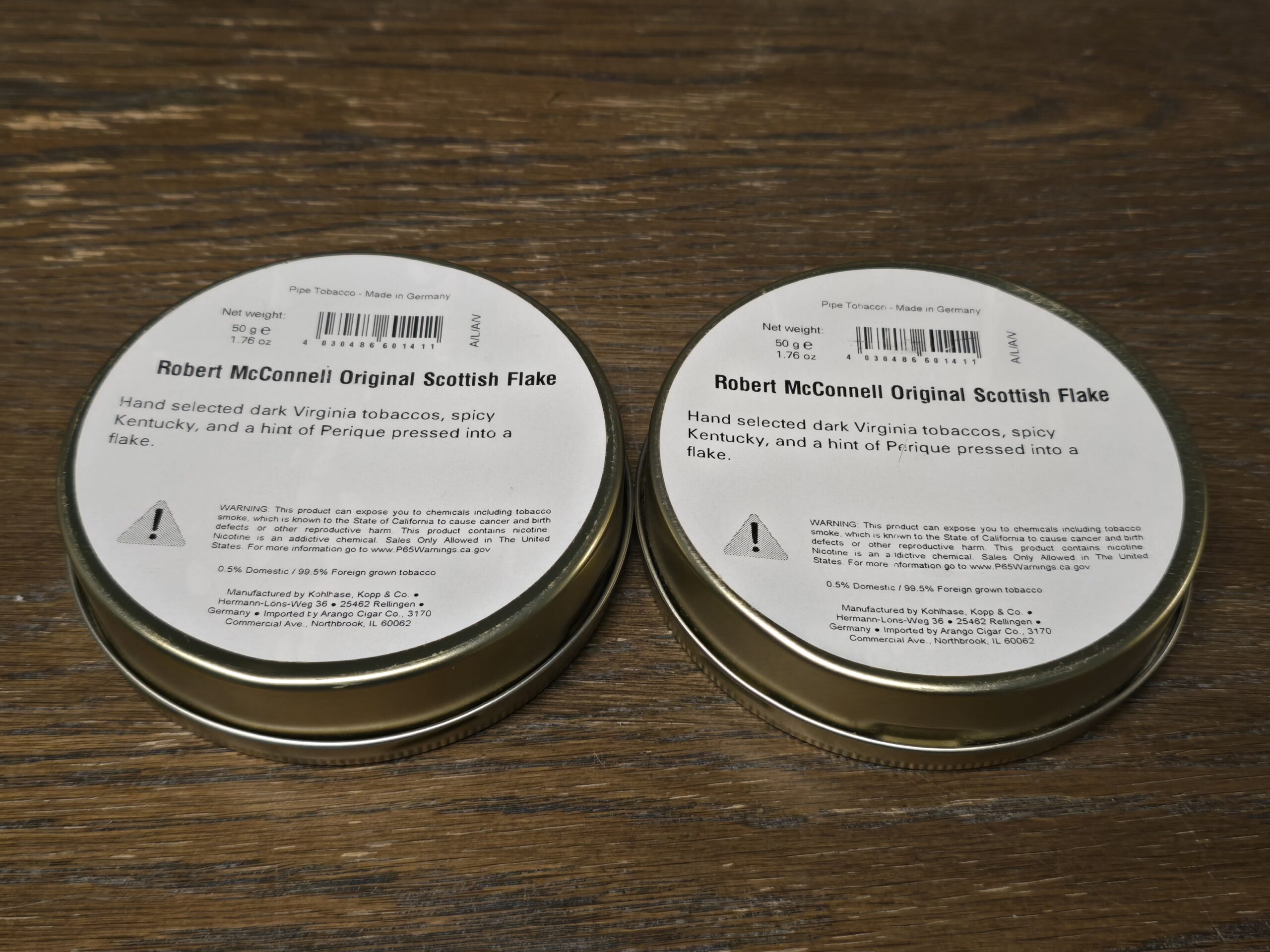 2 Tins - Exclusive dark Virginia tobaccos and a spicy Kentucky with a touch of perique pressed into a flake.