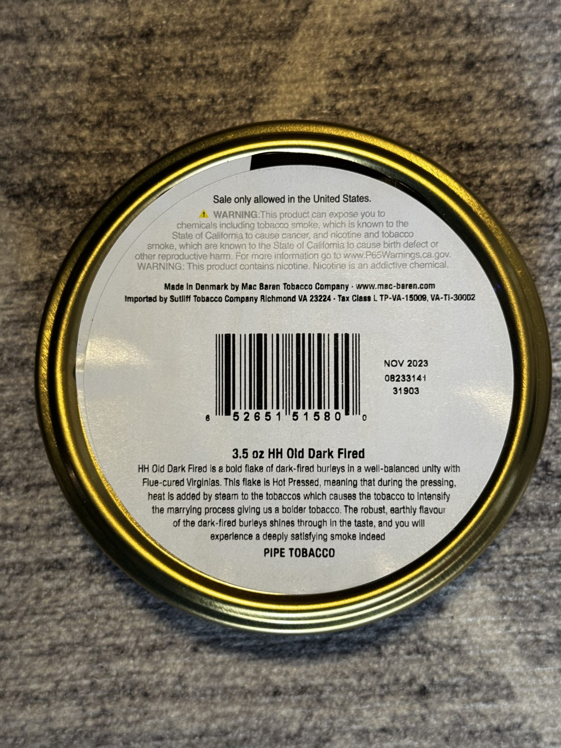 Mac Baren HH Old Dark Fired 3.5oz Tin 2023