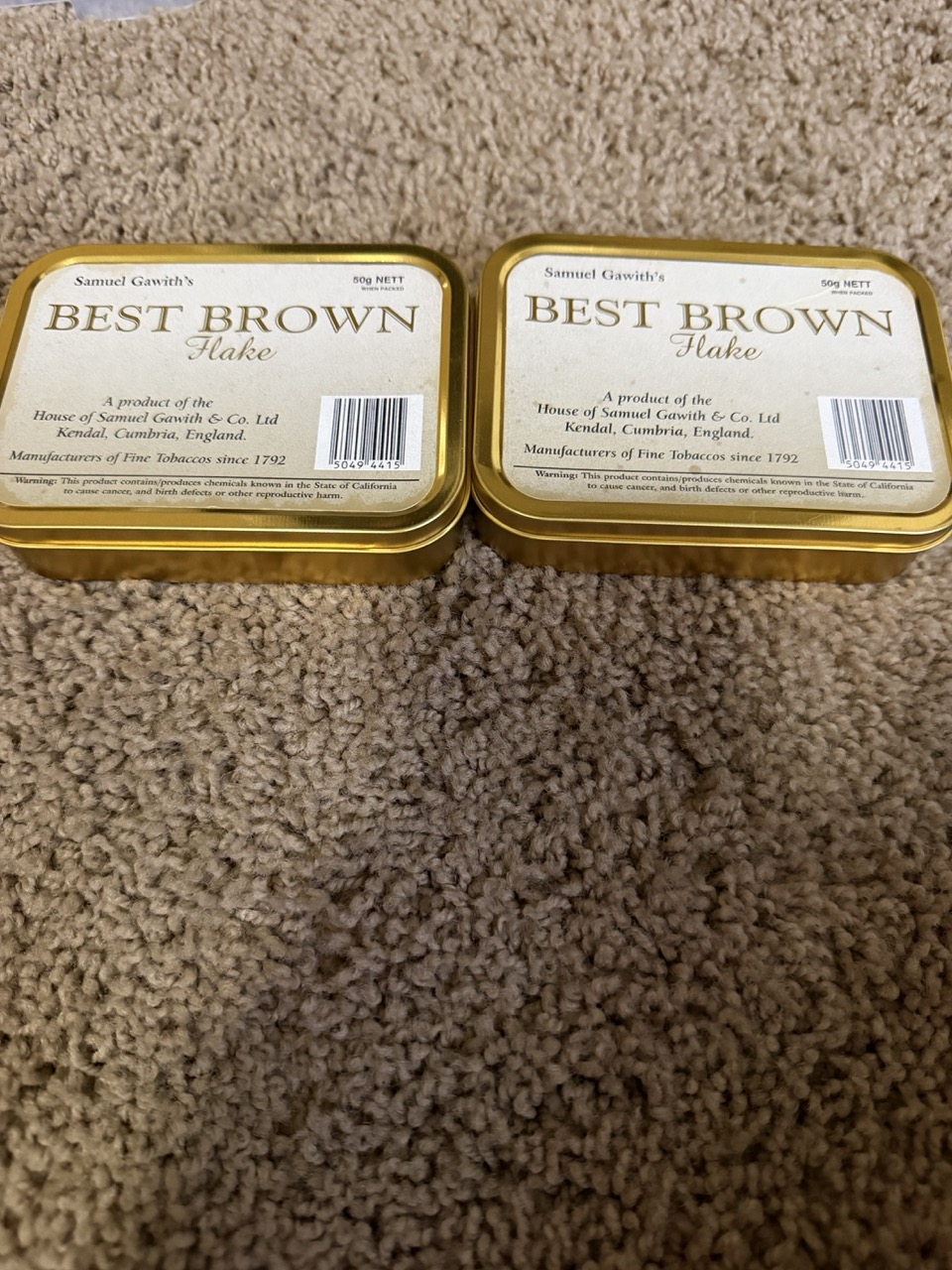 You are bidding on two sealed tins of Samuel Gawith Best Brown Flake from 2012.