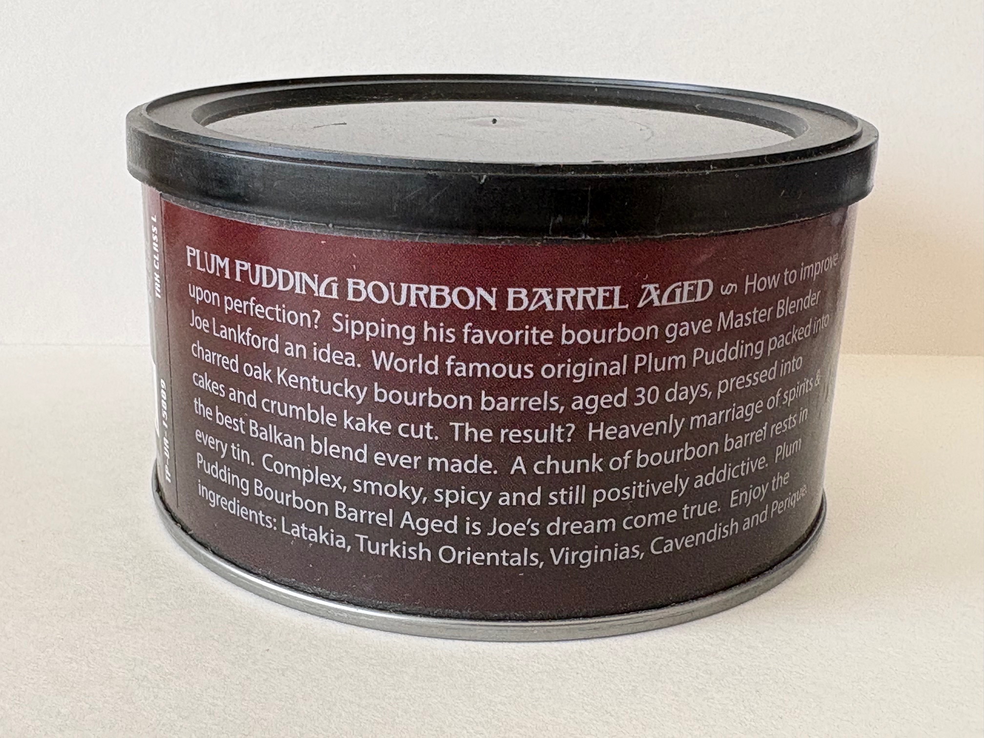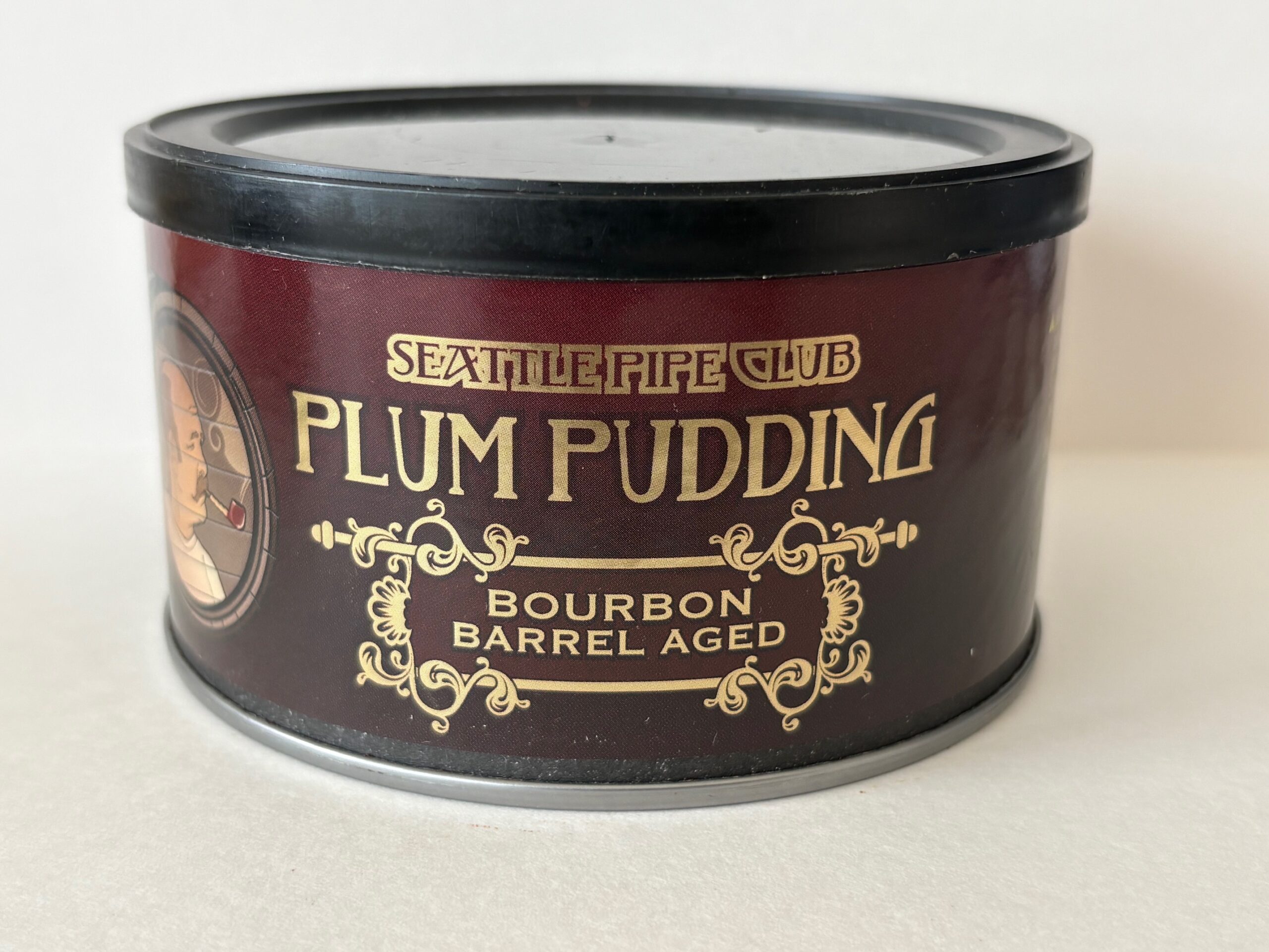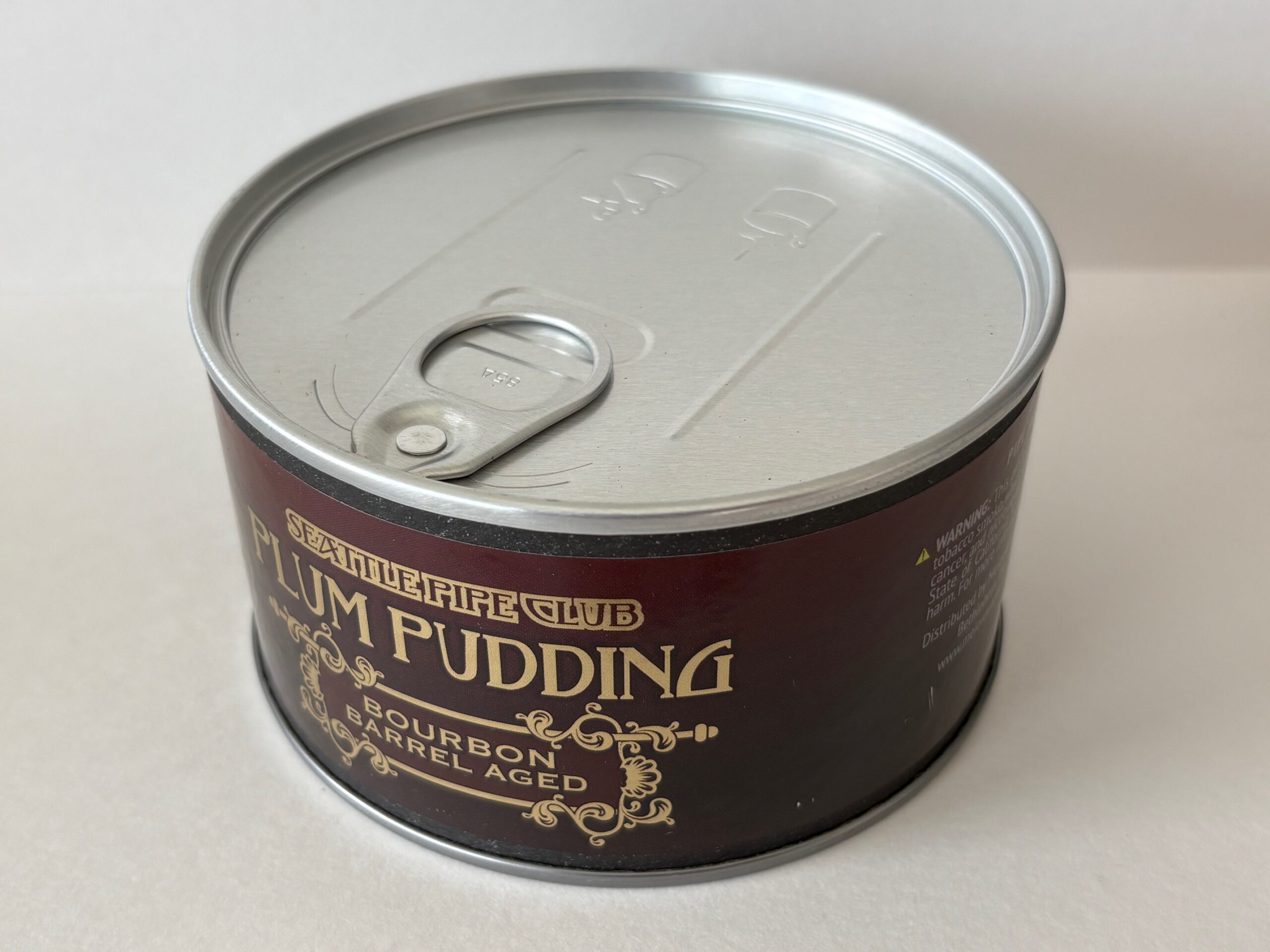 Unopened 2 ounce tin of 2020 Seattle Pipe Club Plum Pudding Bourbon Barrel Aged.