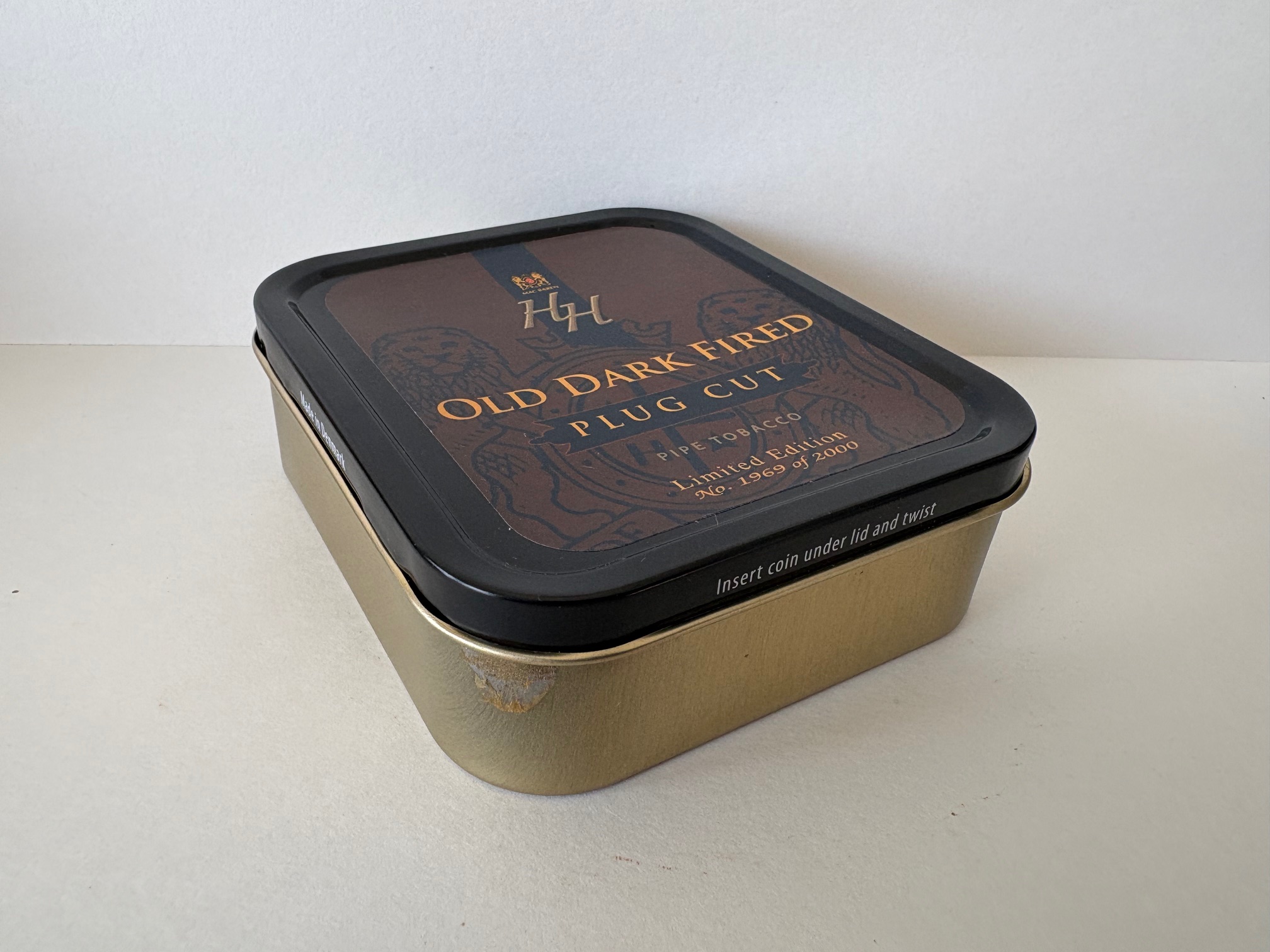 Unopened 3.5 ounce tin of 2019 Mac Baren HH Old Dark Fired Plug Cut (1969/2000).