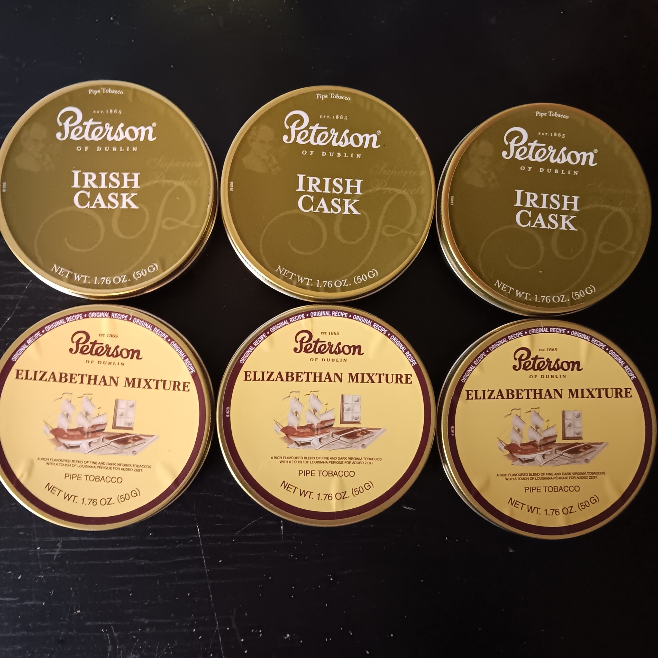 Peterson Sealed 1.76 Ounce Tins [3-Irish Cask, 3-Elizabethan Mixture]