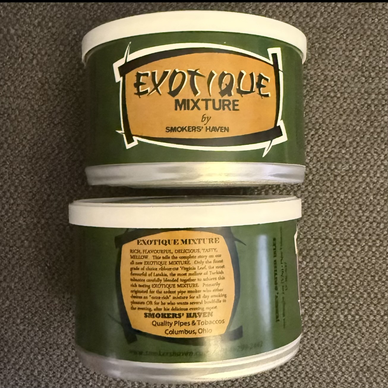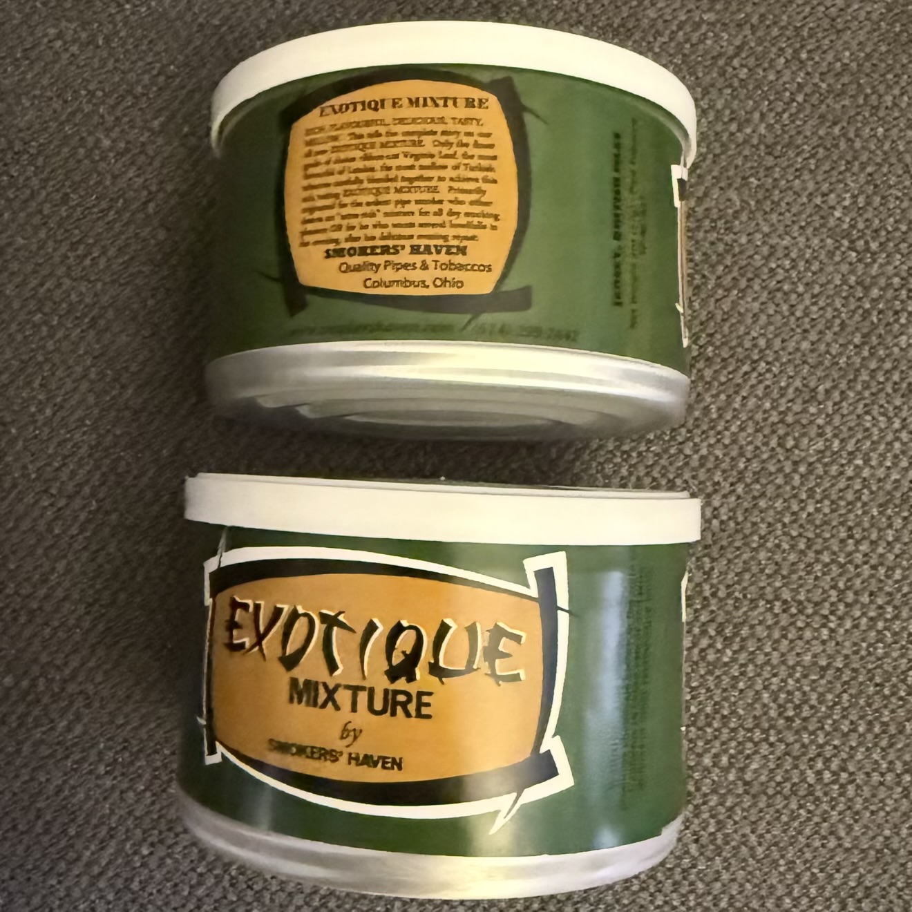 2 unopened 2oz tins of Smoker’s Haven Exotique bought in 2018.