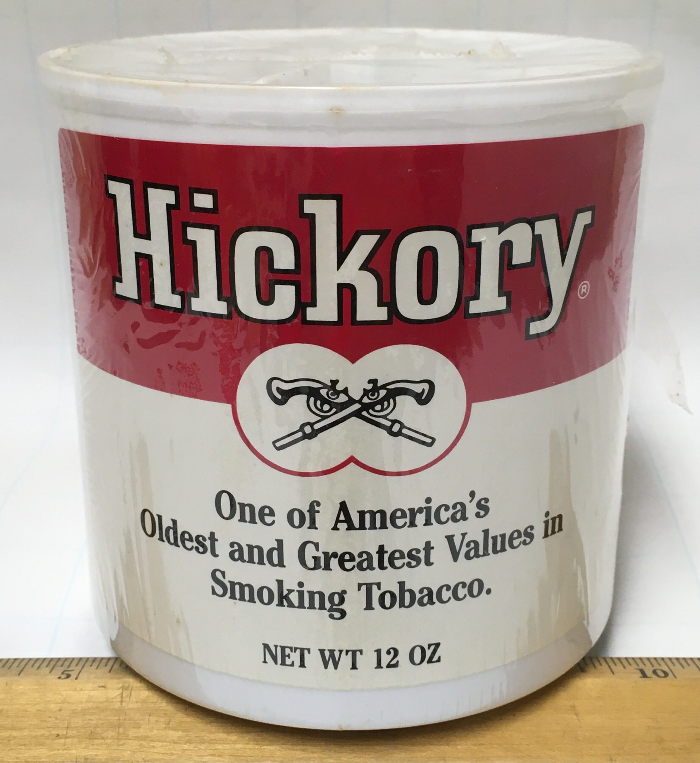 "Hickory ... is a blending of rich Virginia flakes in a base of light burleys and is cut specifically for pipe smoking," "... it's quality standards are much above other brands in its category. Hickory burns long and complete and is cool, mild, with a light aromatic fruitiness --- qualities normally found in only the highest priced tobaccos."