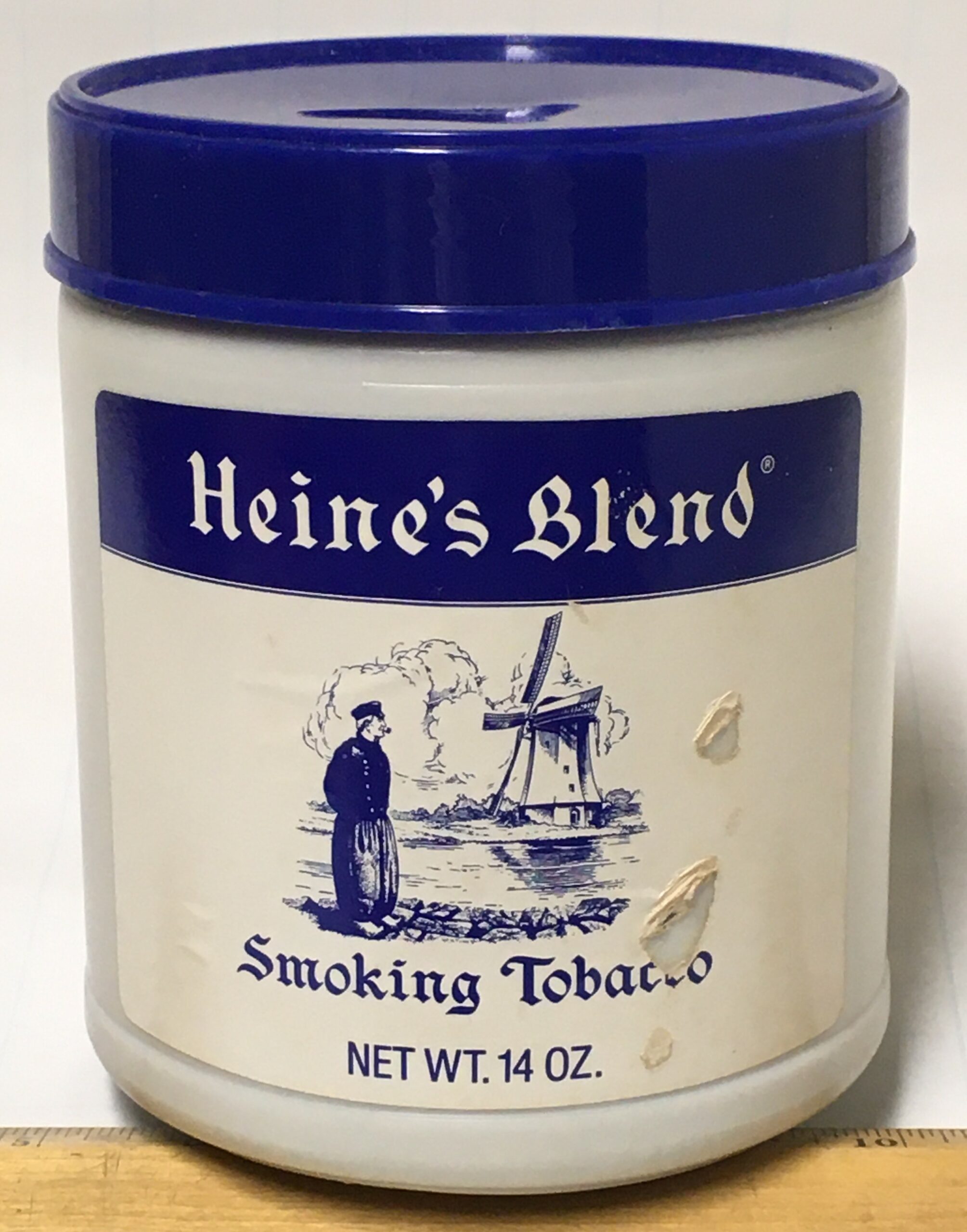 Vintage HEINE'S BLEND Smoking Tobacco (1988?) in 14oz sealed, white plastic can.