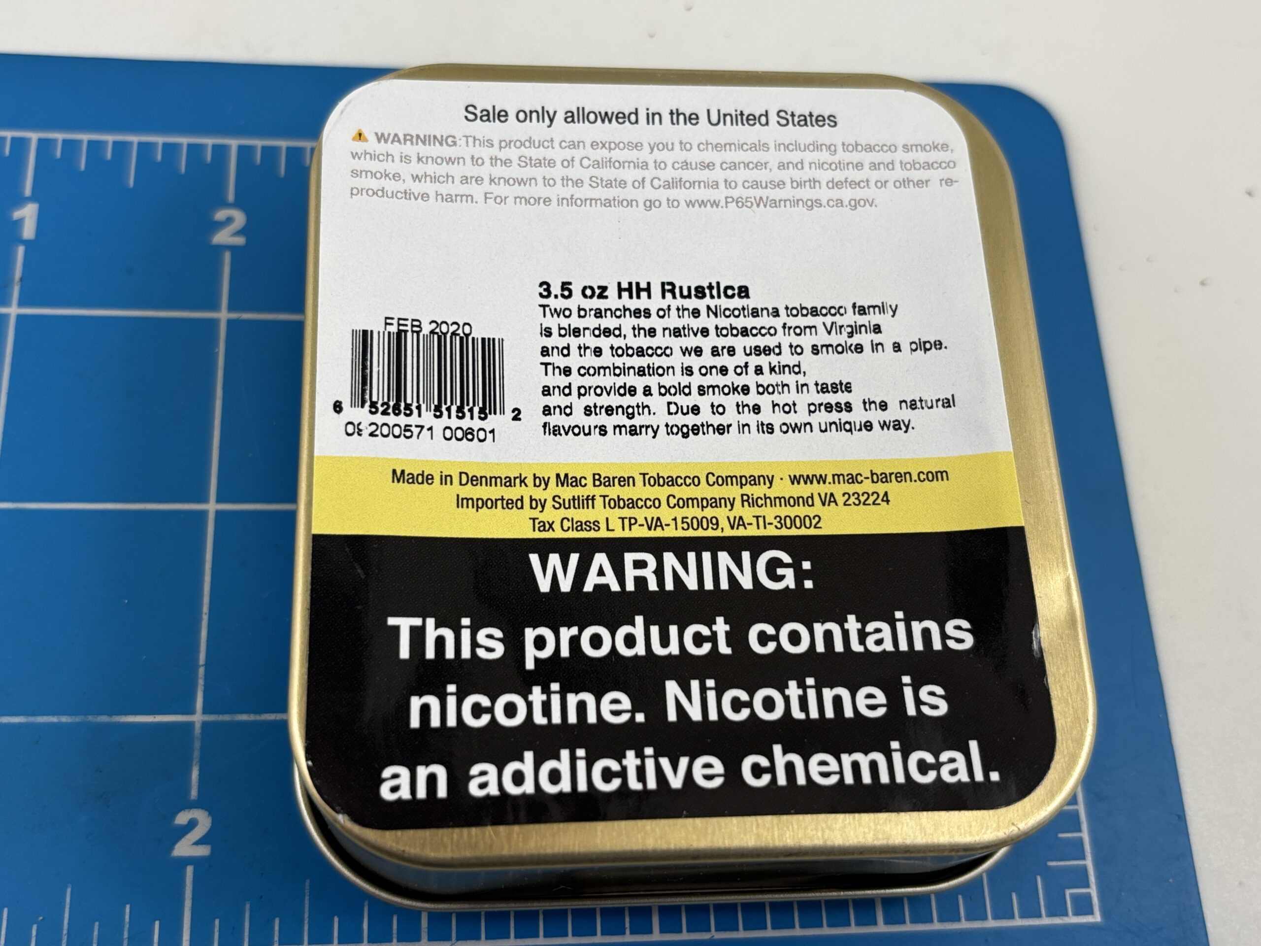 Excellent Sealed 2020 Mac Baren HH Rustica 3.5oz. Tin
