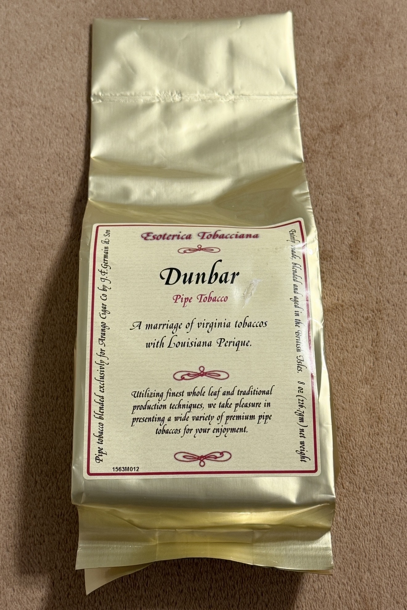 Factory sealed 8 ounce Dunbar golden bag