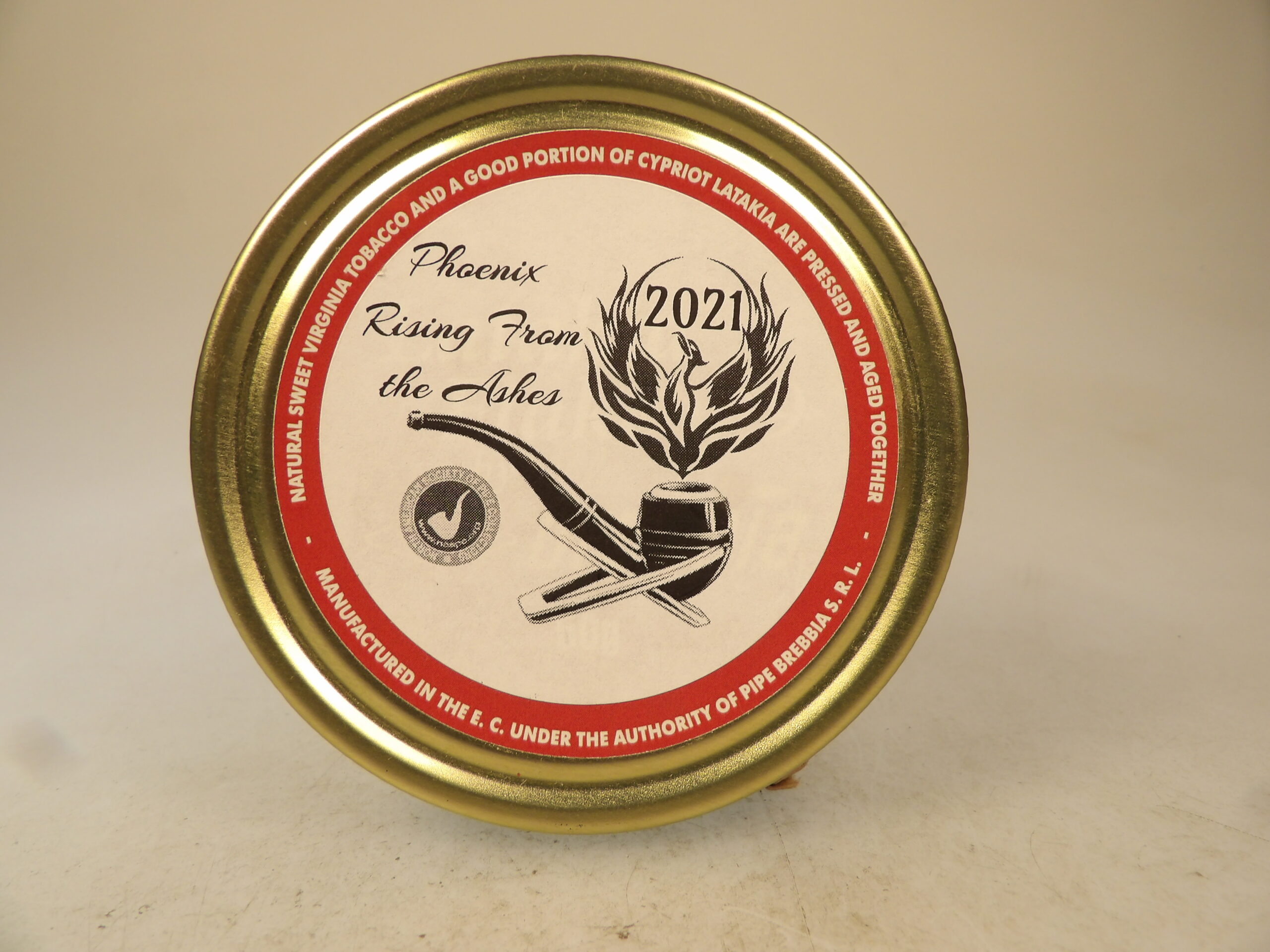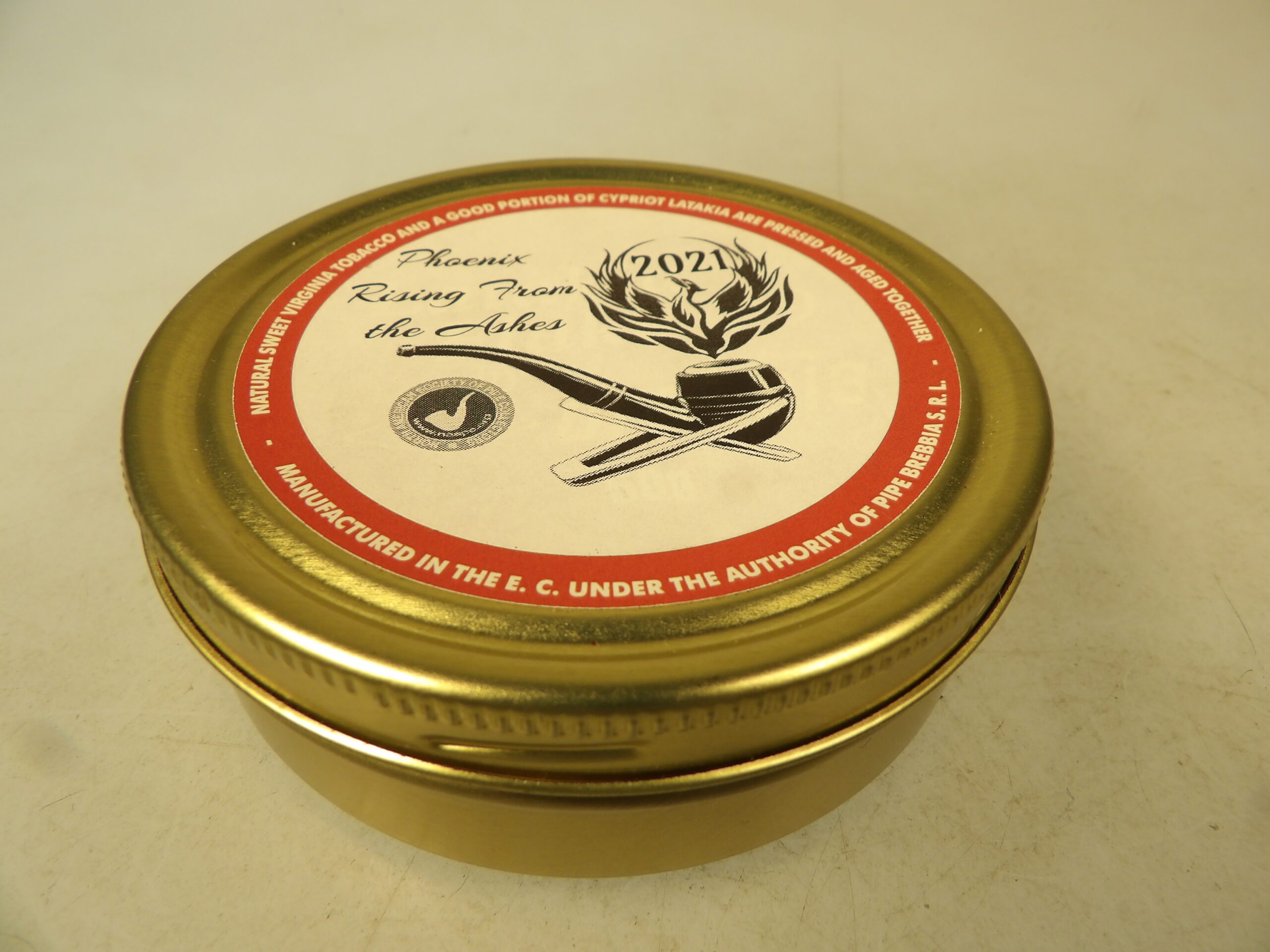 DESCRIPTION: Here is an auction for sale. It is a Vintage Collectible NASPC Show Phoenix Rising from the Ashes 2021 2 Oz. Sealed Pipe Tobacco Tin. This tin is sealed and has never been opened. Natural Sweet Virginia and Cyprian Latakia are pressed and are aged together. Good Luck Bidding and Thanks for Stopping by.
