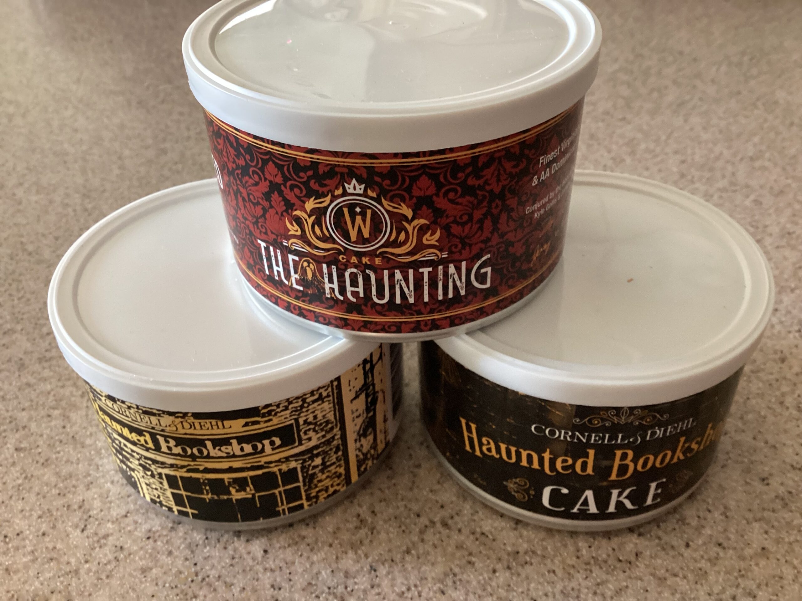 Cornell & Diehl’s Haunted Bookshop Cake takes the original recipe and presses it into a firm crumble cake to marry the flavors for a more consistent experience, and the pressure and the resulting heat from the process will imitate the effect of long aging without all the waiting. Tin is dated 072022.