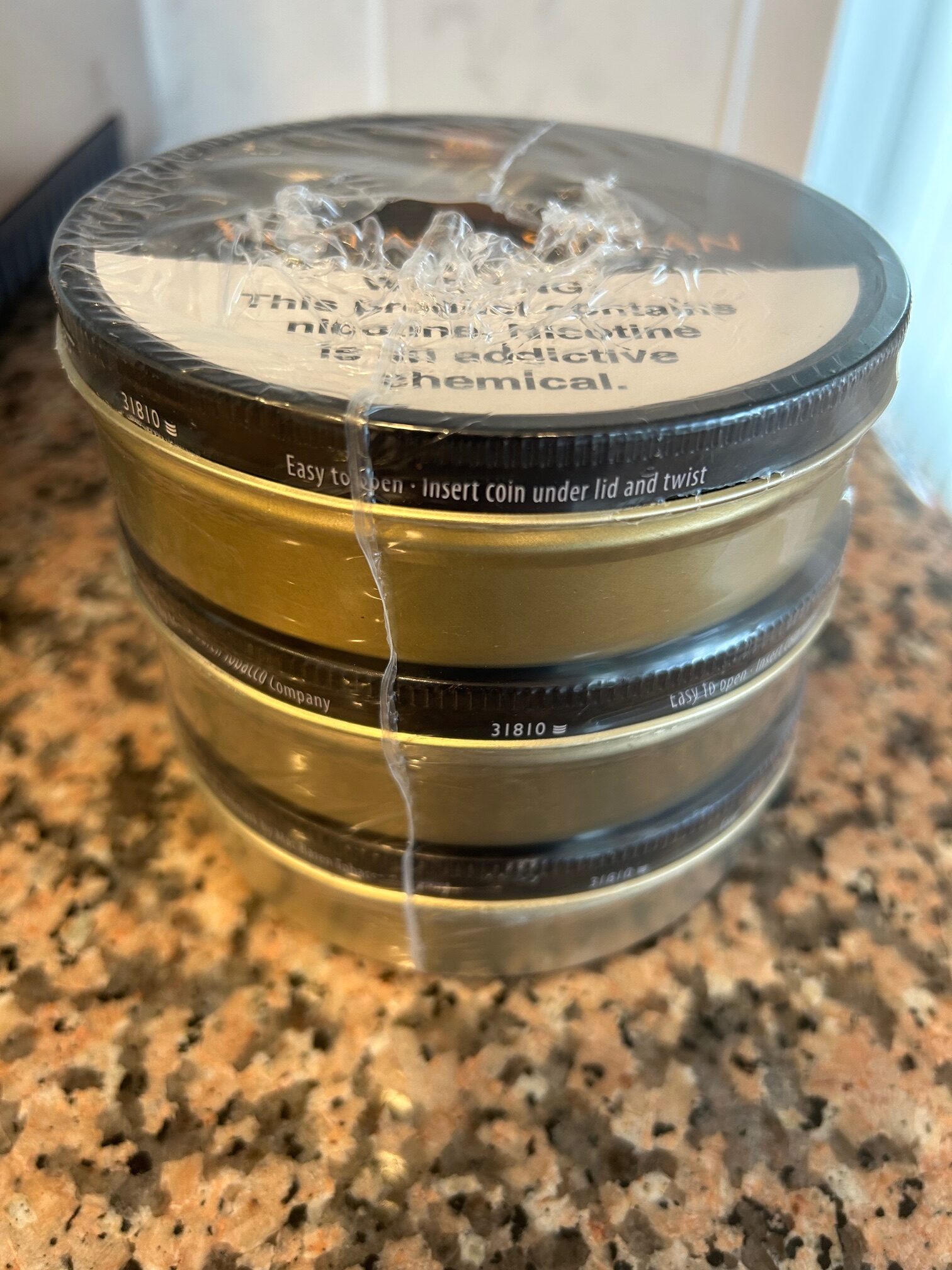 Up for your consideration, are three, 100 Gram sealed tins in original sleeve, and are in excellent condition. These tins are from my own personal cellar which is temperature controlled and stored in totes.