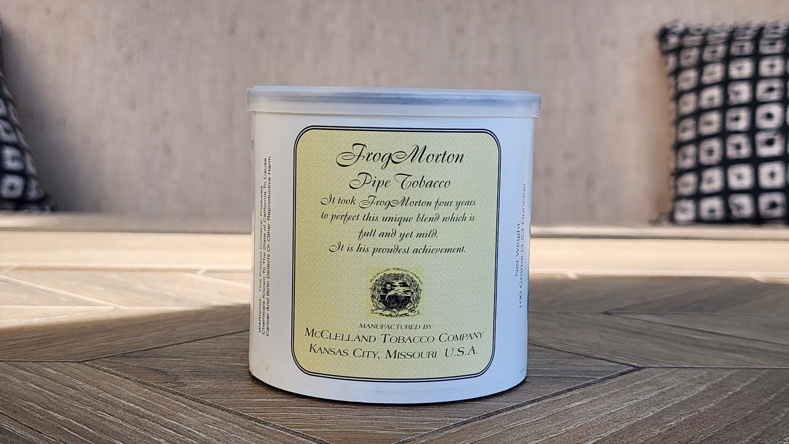 This auction is for one 100g tin of Frog Morton by McClelland Tobacco Company, dated 2018.
