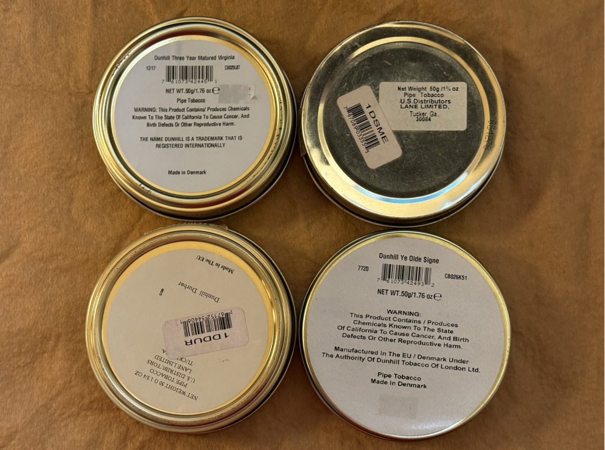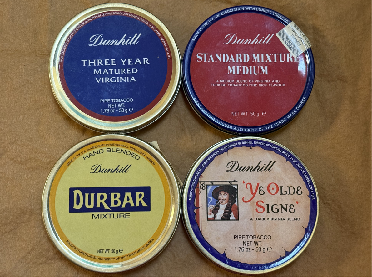 4 different Dunhill tins from various years.