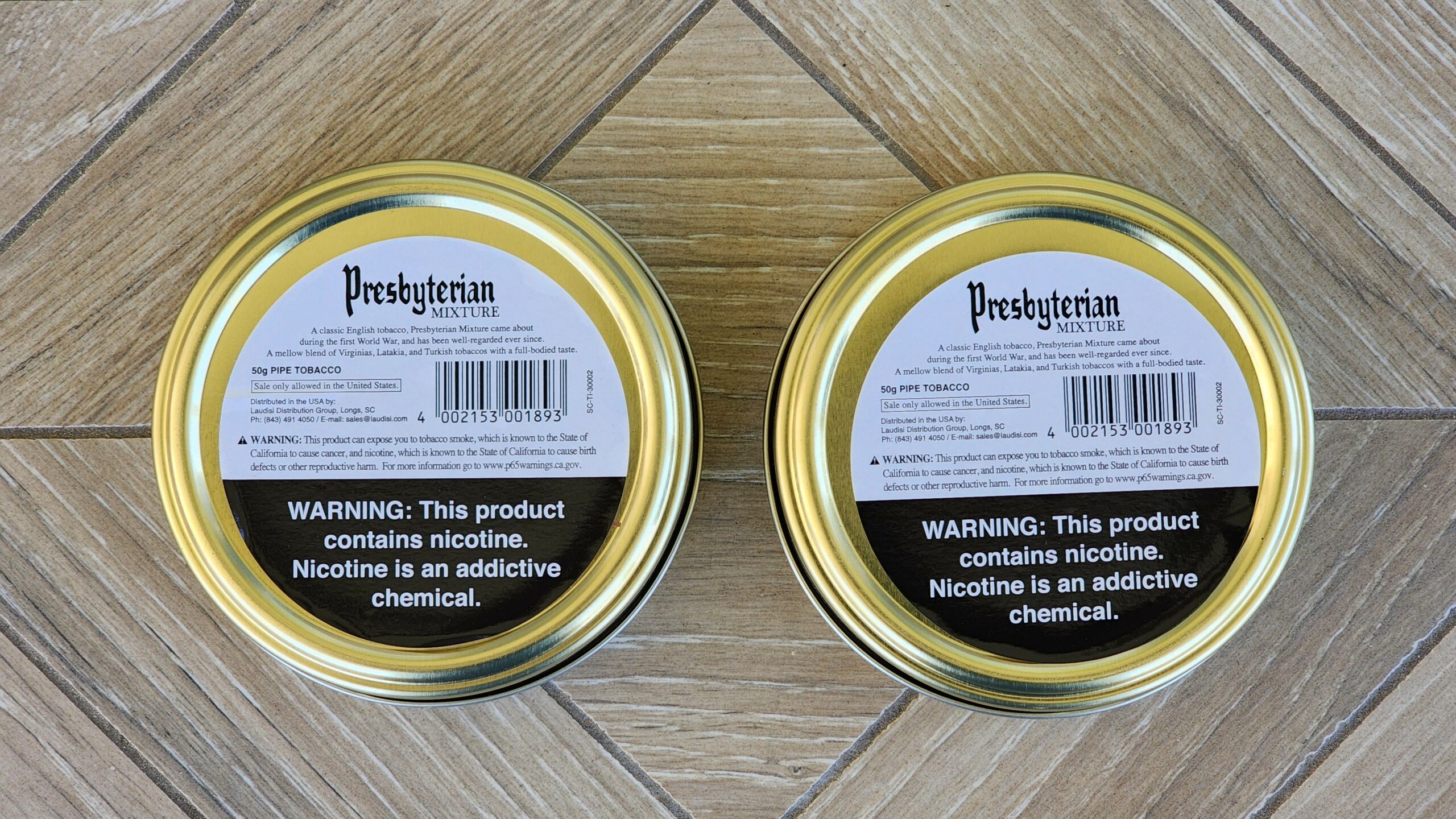This auction is for two 50g tins of Presbyterian Mixture Milange, purchased in June 2018.