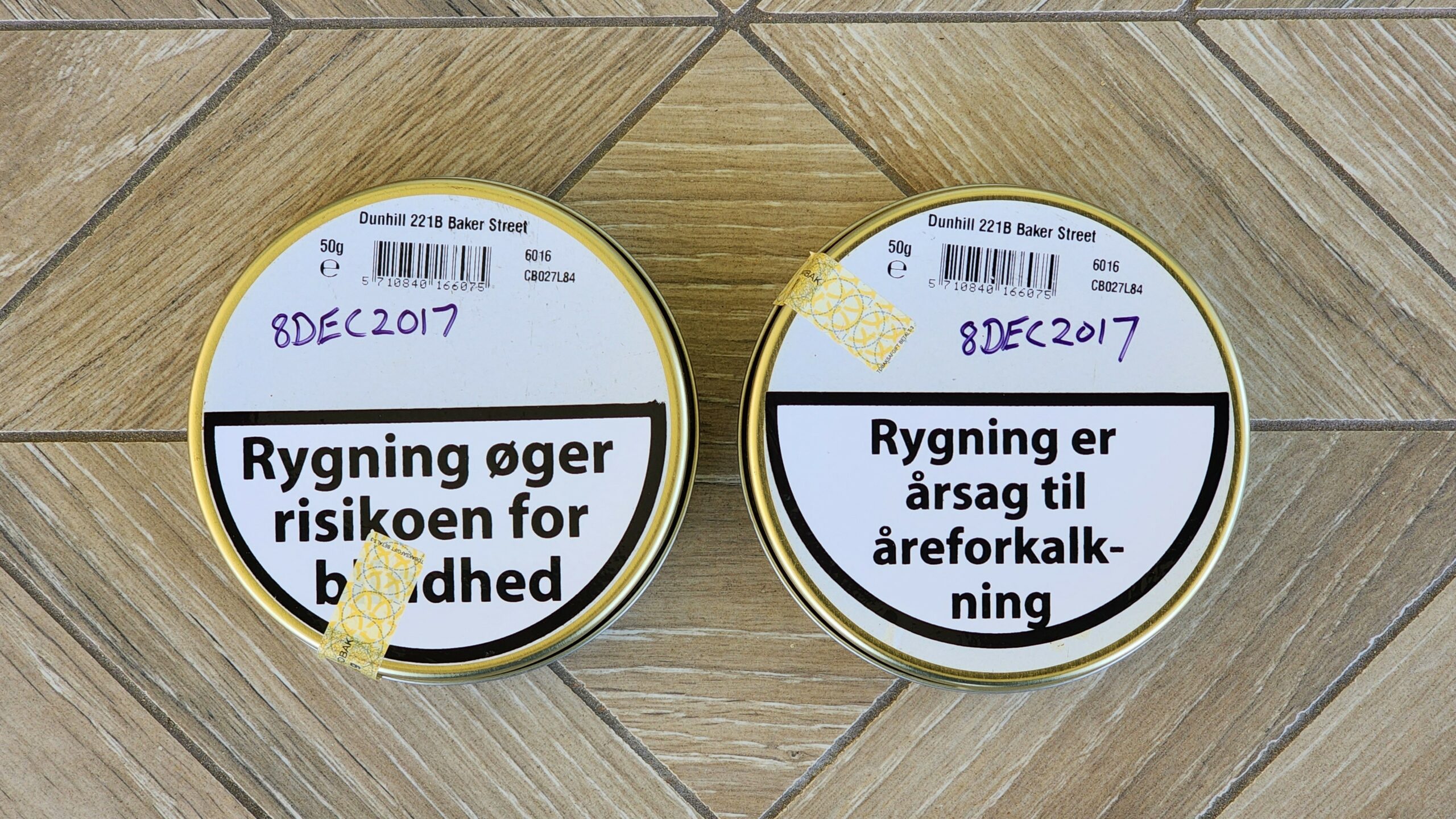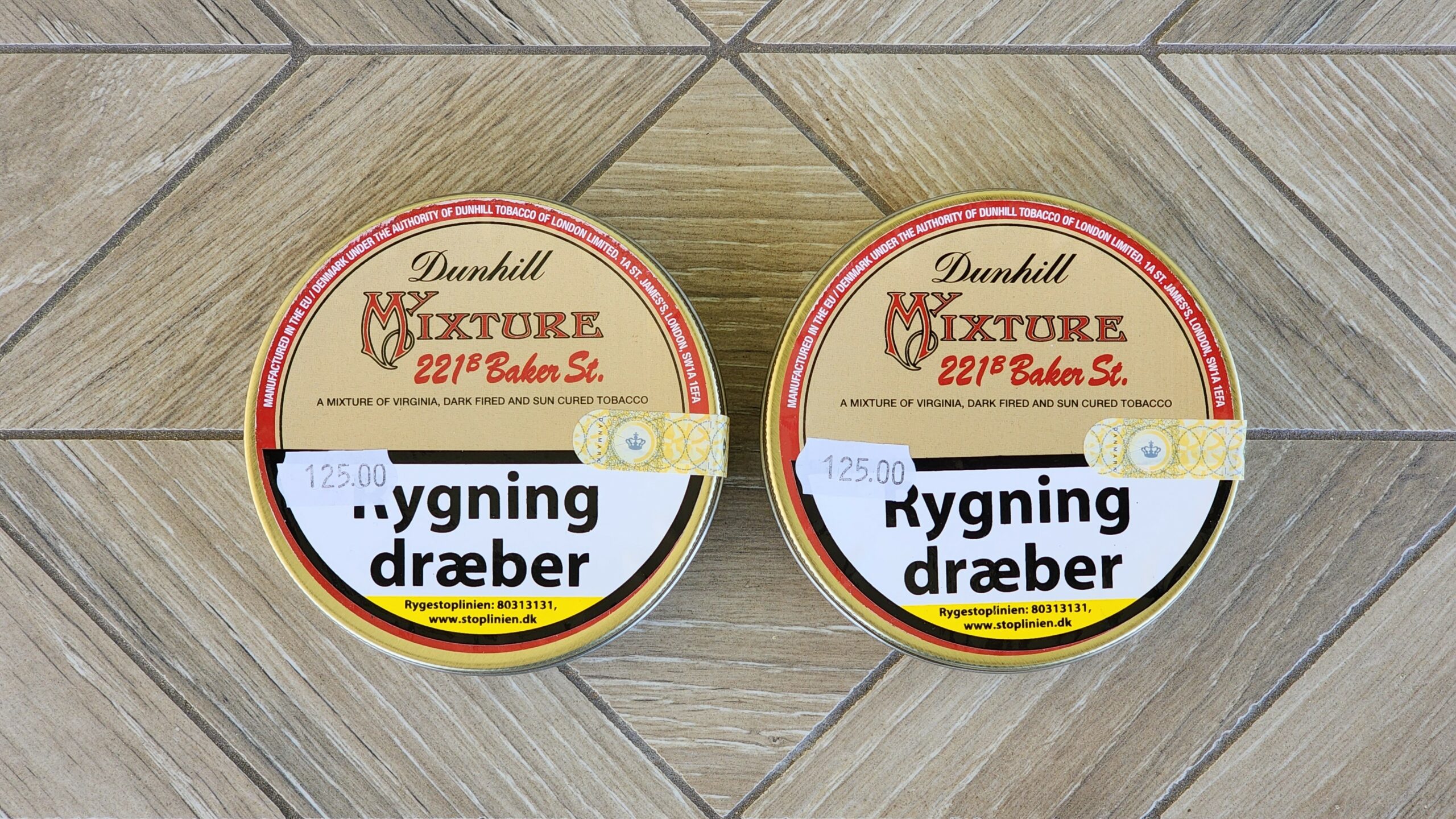 This auction is for two 50g tins of Dunhill My Mixture 221B Baker St., dated December 2017.