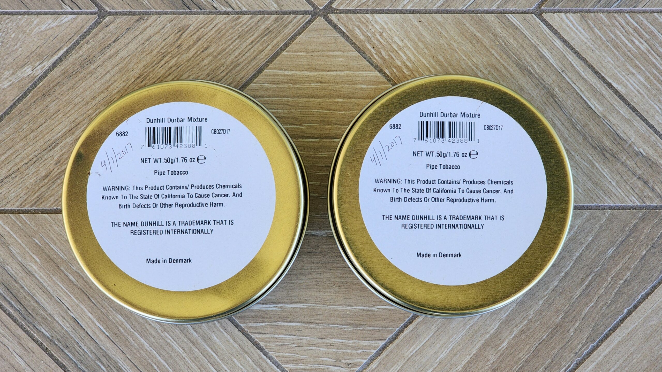 This auction is for two 50g tins of Dunhill Durbar, dated 2017.