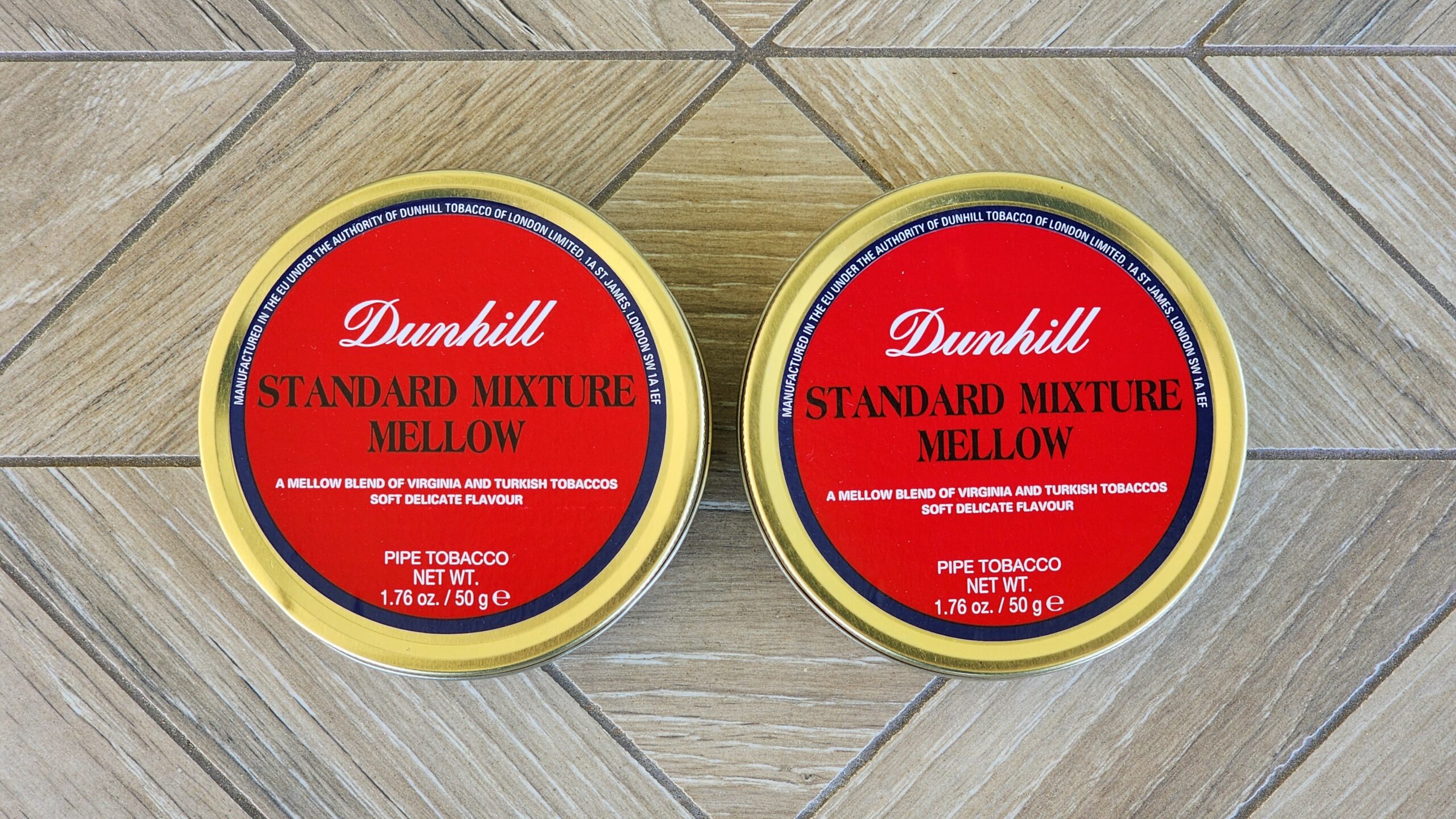 This auction is for two 50g tins of Dunhill Standard Mixture Mellow, dated 2011.