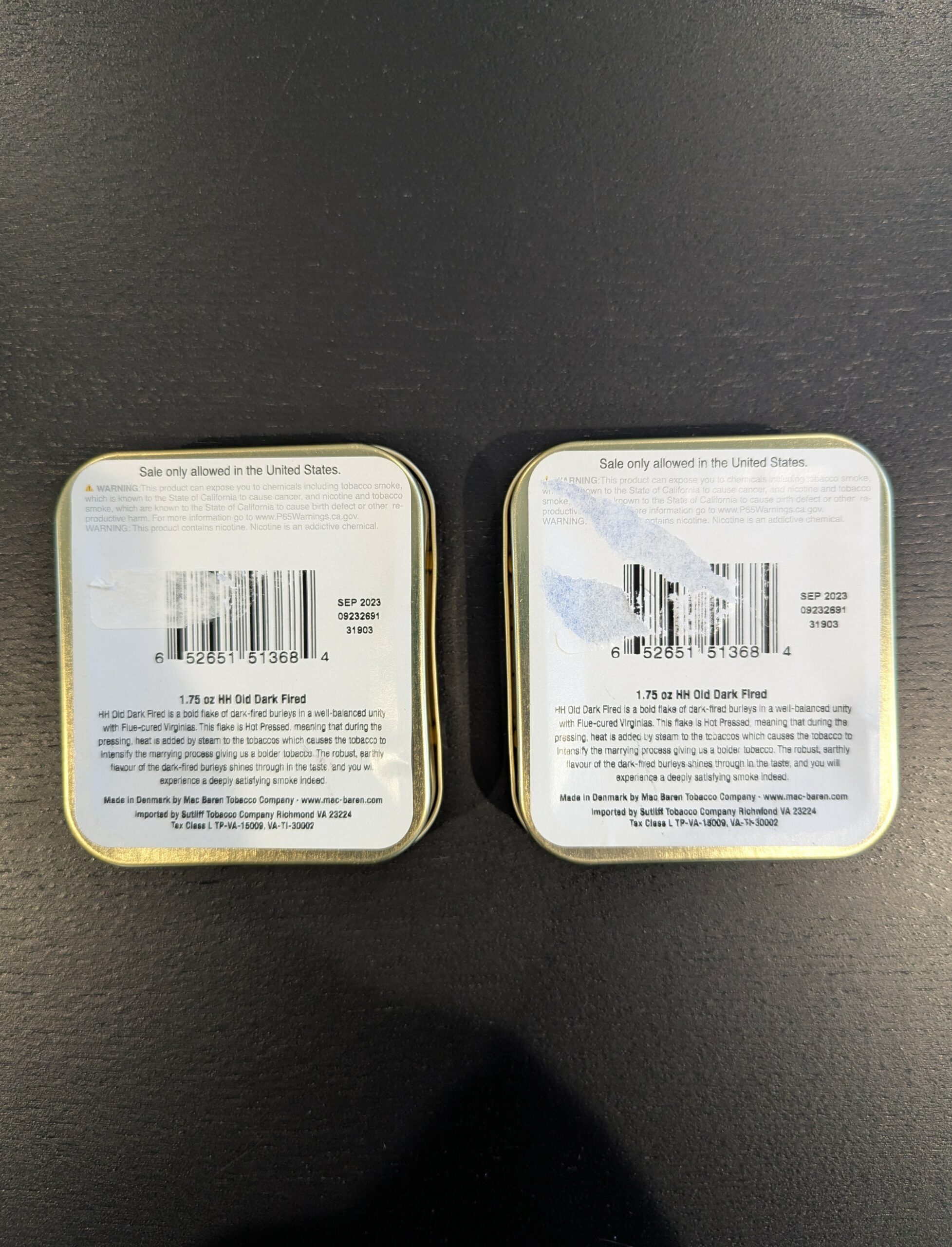 2 sealed 1.75 oz tins of Mac Baren HH Old Dark Fired 2023