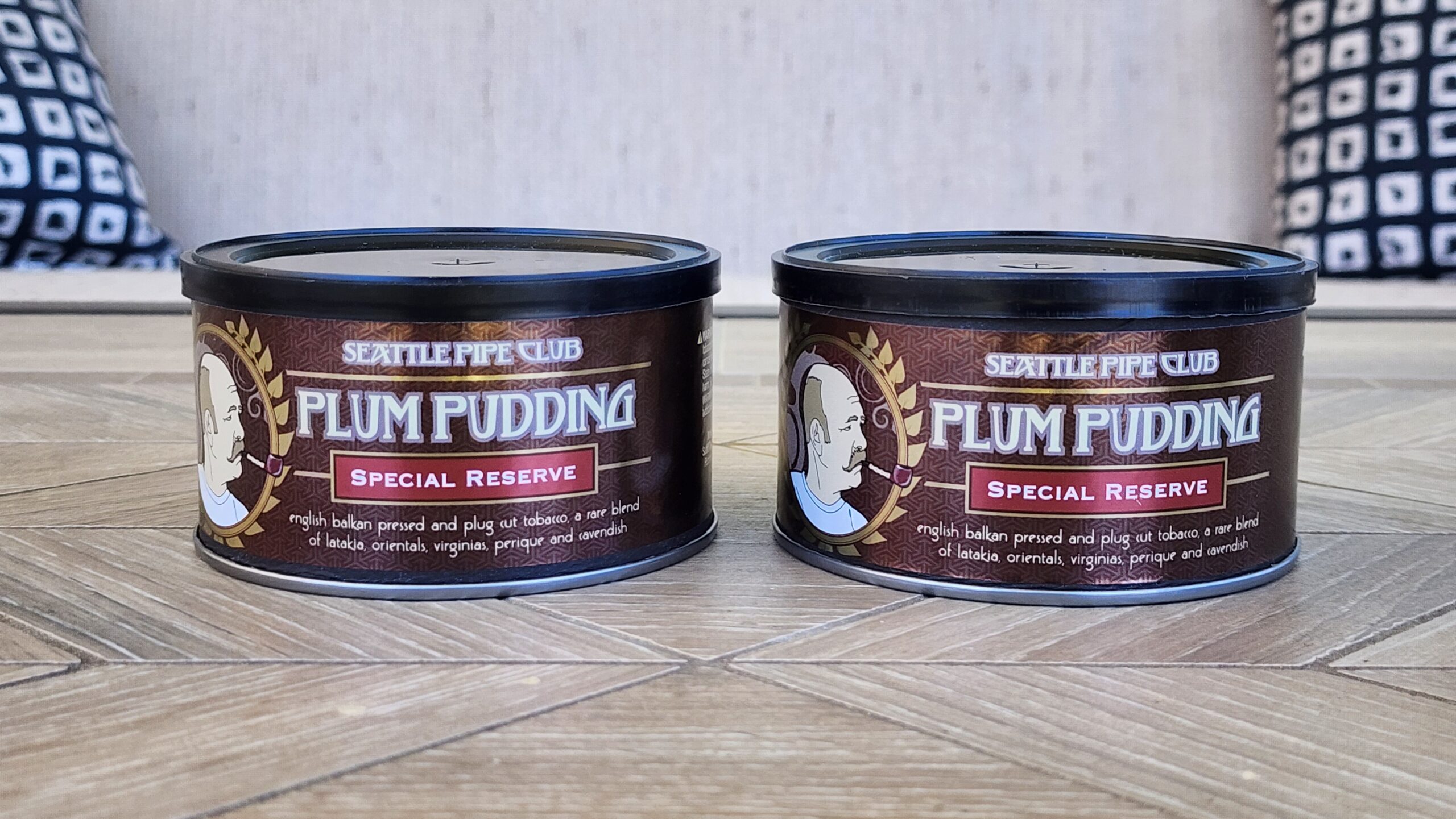 This auction is for two 4 oz tins of Plum Pudding Special Reserve by Seattle Pipe Club. These tins were manufactured by Sutliff, and purchased in 2022.