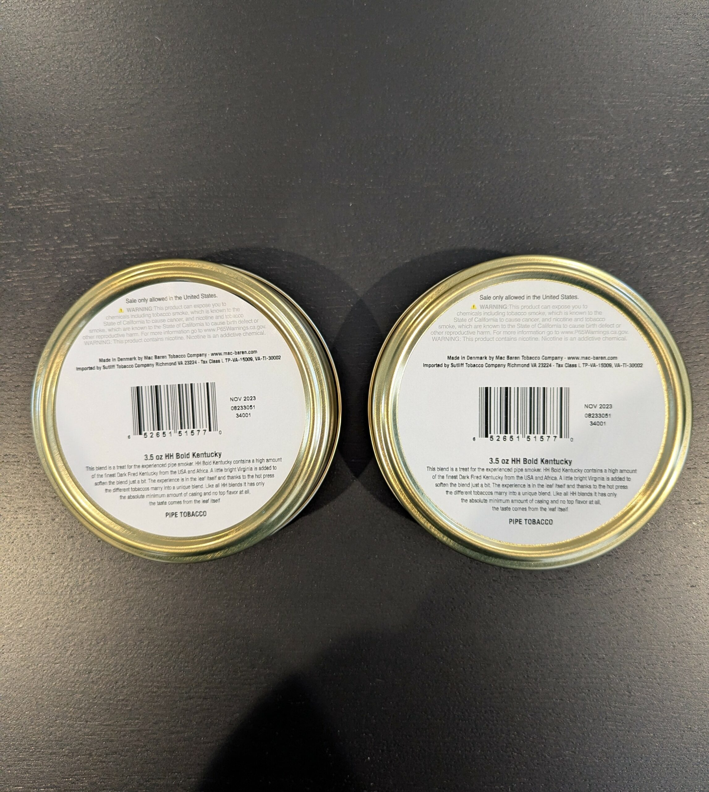 2 sealed tins of 3.5 oz HH Mac Baren Bold Kentucky 2023