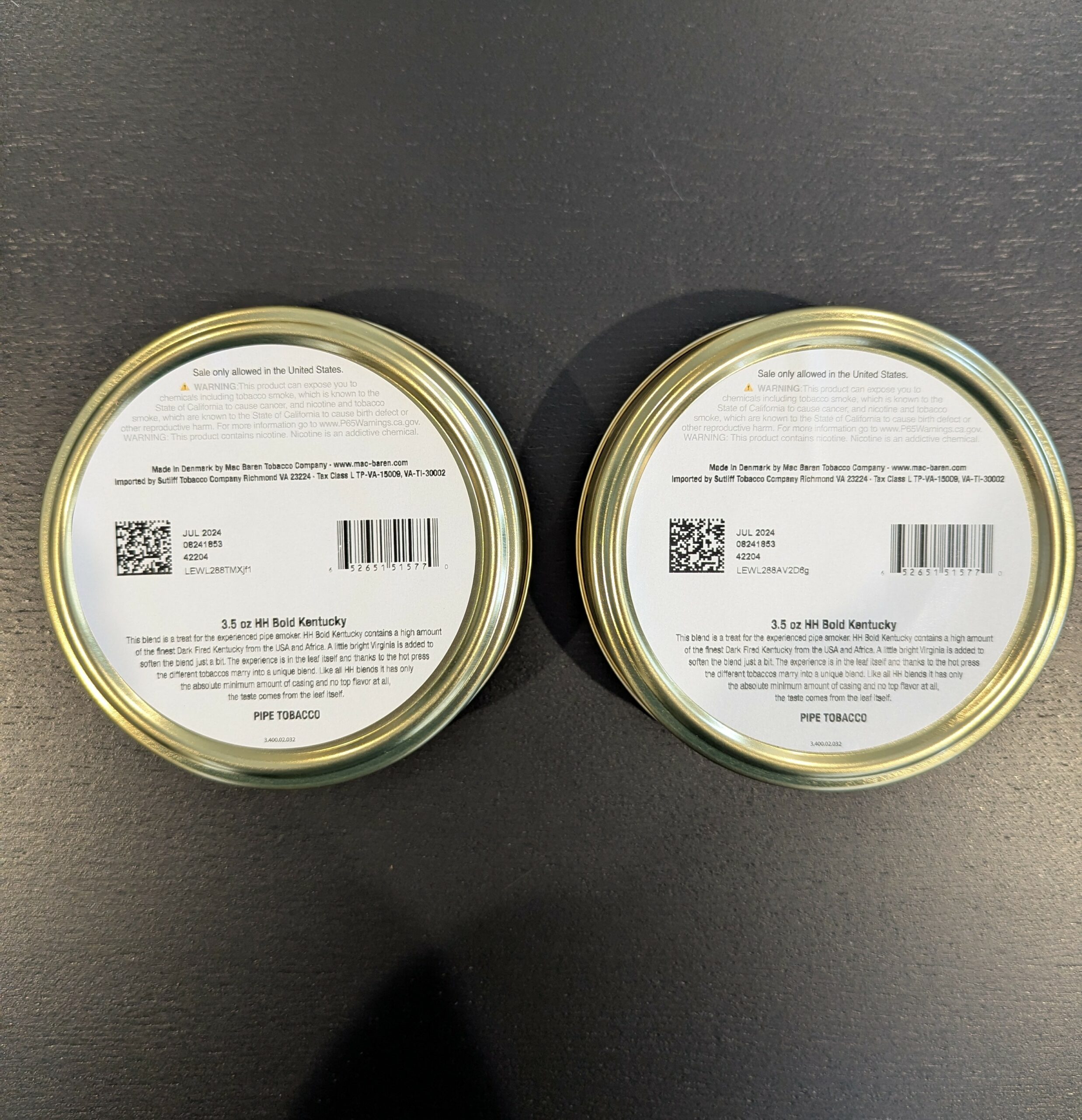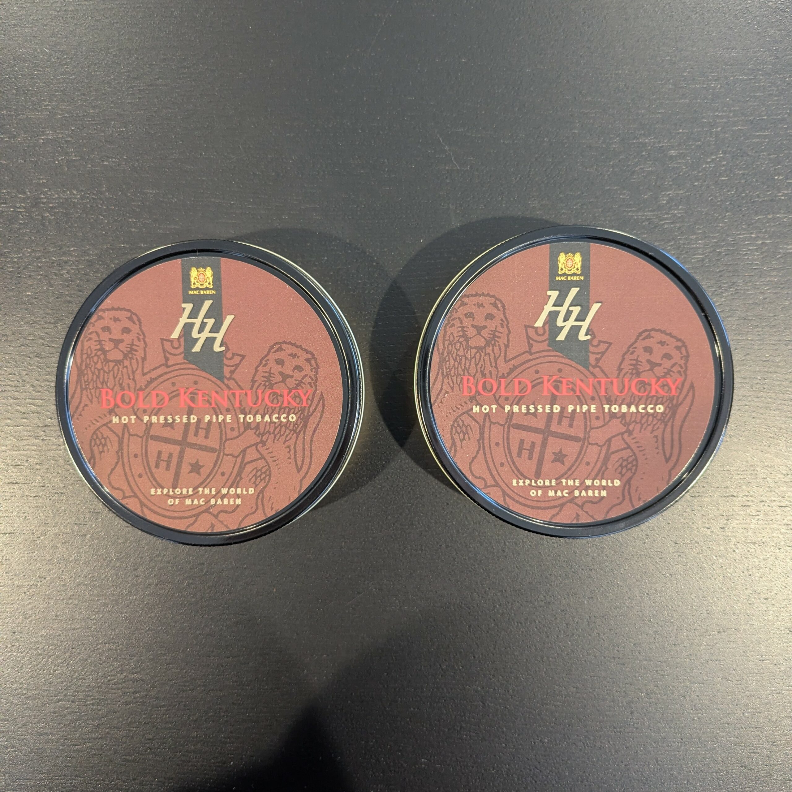 two sealed 3.5 oz tins of 2024 Mac Baren HH Bold Kentucky