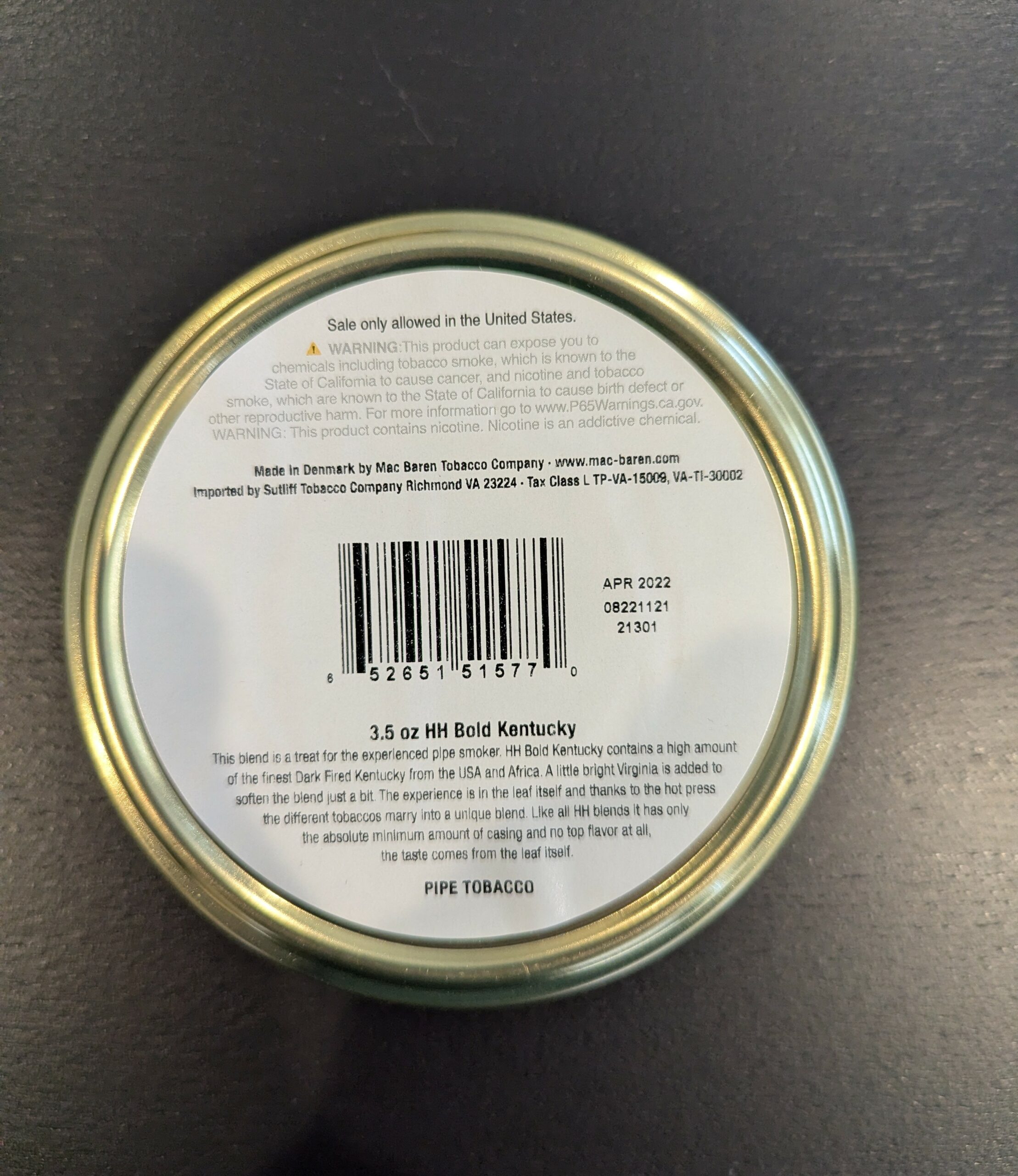 1 sealed 3.5 oz tin of 2022 Mac Baren HH Bold Kentucky