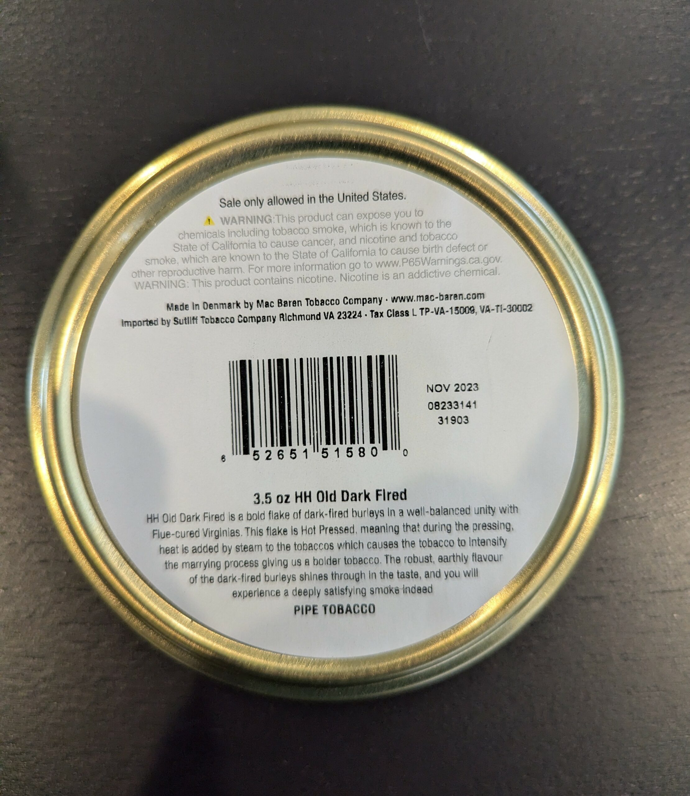 1 sealed 3.5 oz tin of 2023 Mac Baren HH Old Dark Fired